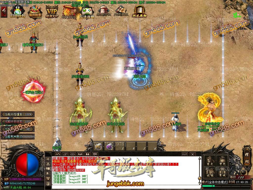 金币充值比例 1 :10   版本为正常开区端有问题联系QQ 616102345  处理