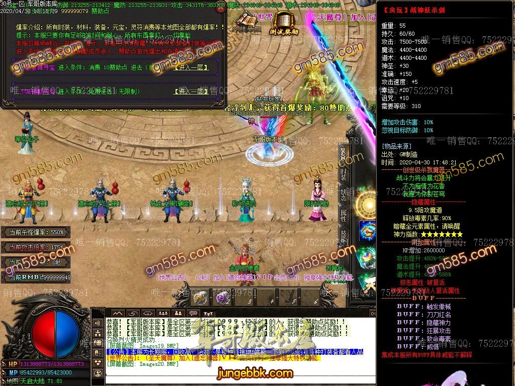 〖公告〗13.新增特色:所有装备全部爆出一件不留,适合散人打宝,组队混终极装备!散人不花钱一样混的好。