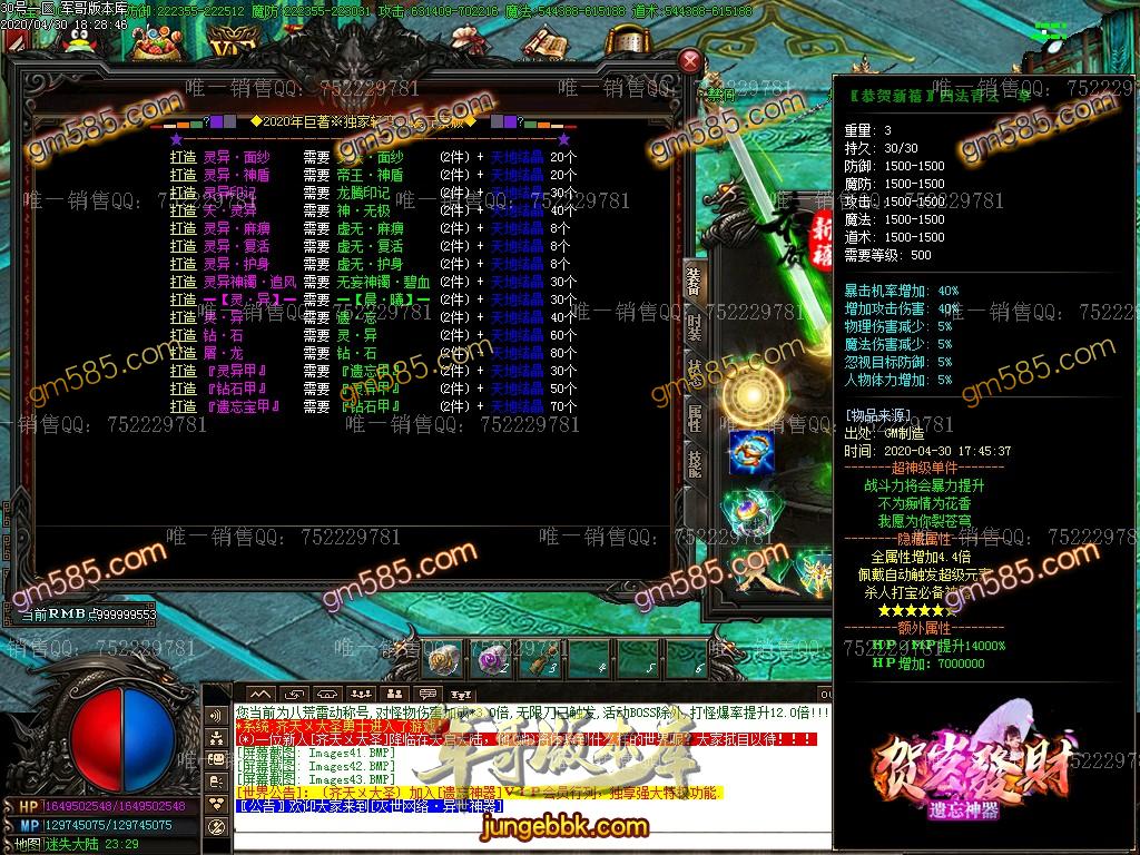[GOM引擎] 16-855独家贺岁发财II遗忘神器激情单职业传奇服务端-带假人-光柱-第七大陆-沙城捐献