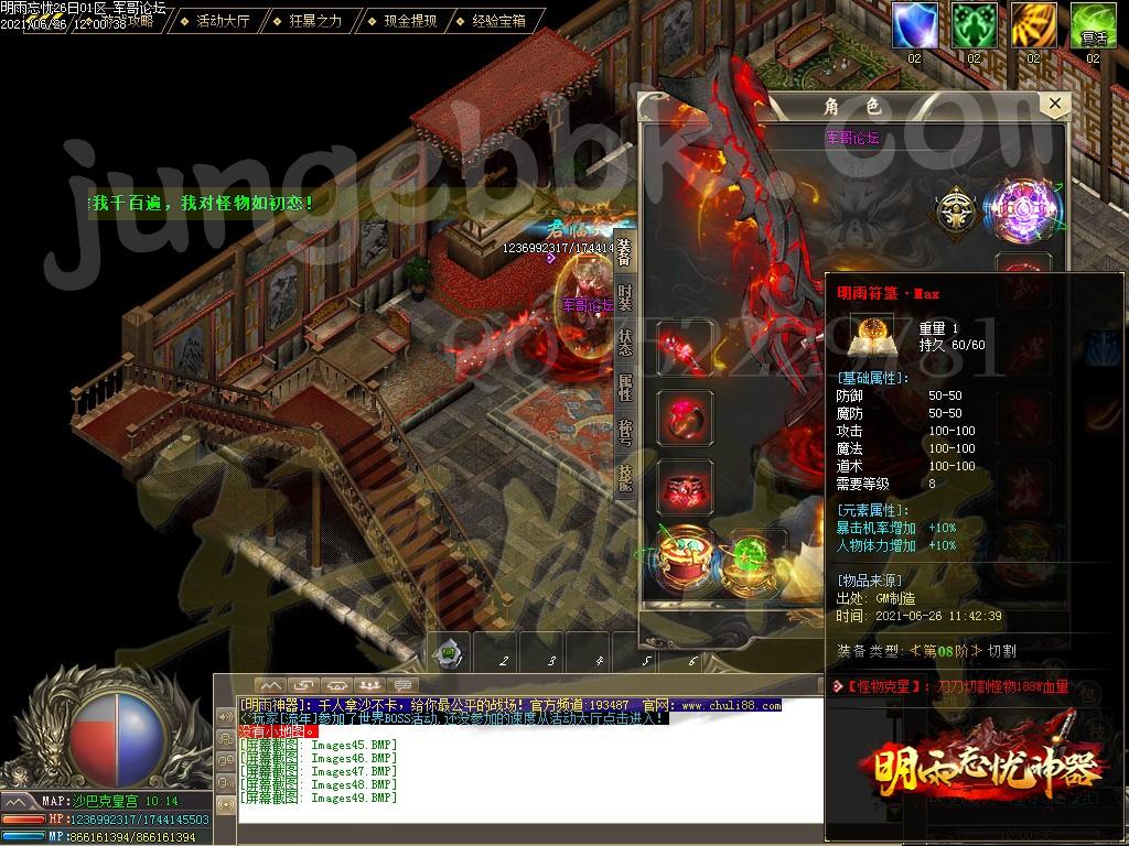 本服充值攻略:【32元】 ★充值比例1:10★ 风险指数:0风险 利润指数:★★★★★ 2天预计利润:200-300元 充值32元,300充值开启沙城捐献(开启沙城捐献后免费领赞助大使) 获得明雨符菉MAX:切割刀刀切割怪物188万 技能半月丶群毒跟初始装 20充值开启狂暴之力 怪物爆率增加100% 获得基础体力魔法+50000 激活十步一杀技能 有专属地图 自动回收功能 【自动捡物】:在游戏界面背包里面在线回收,点开之后点击开启自动捡物即可 【挂机服务】:F12点开后有个挂机点开,先设置几个挂机点后,开启挂机即可双手脱离键盘 【群怪配置】:需要把自己装备元素打到物理伤害减少95以上 【人物麻痹】:前期等级压制十步一杀均可麻痹敌人2秒,防止麻痹可在土城正上方合成四魔器套装 【QQ礼包】:需要上背包里面点击腾讯群礼包,群号:75660982 即可 技能施毒术丶九重刺杀丶九重烈火丶九重逐日丶九重开天 ============================================================