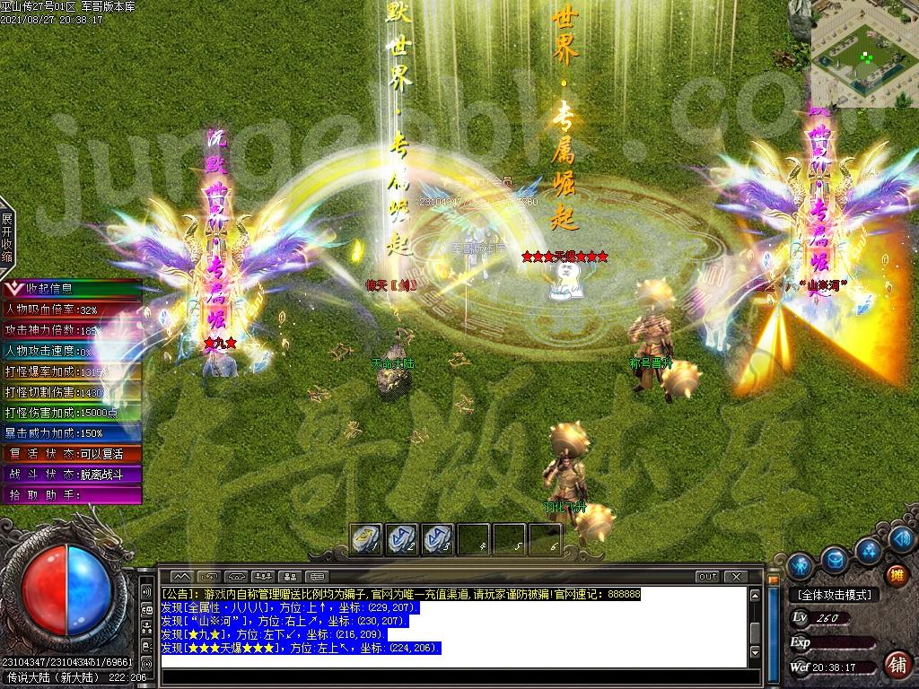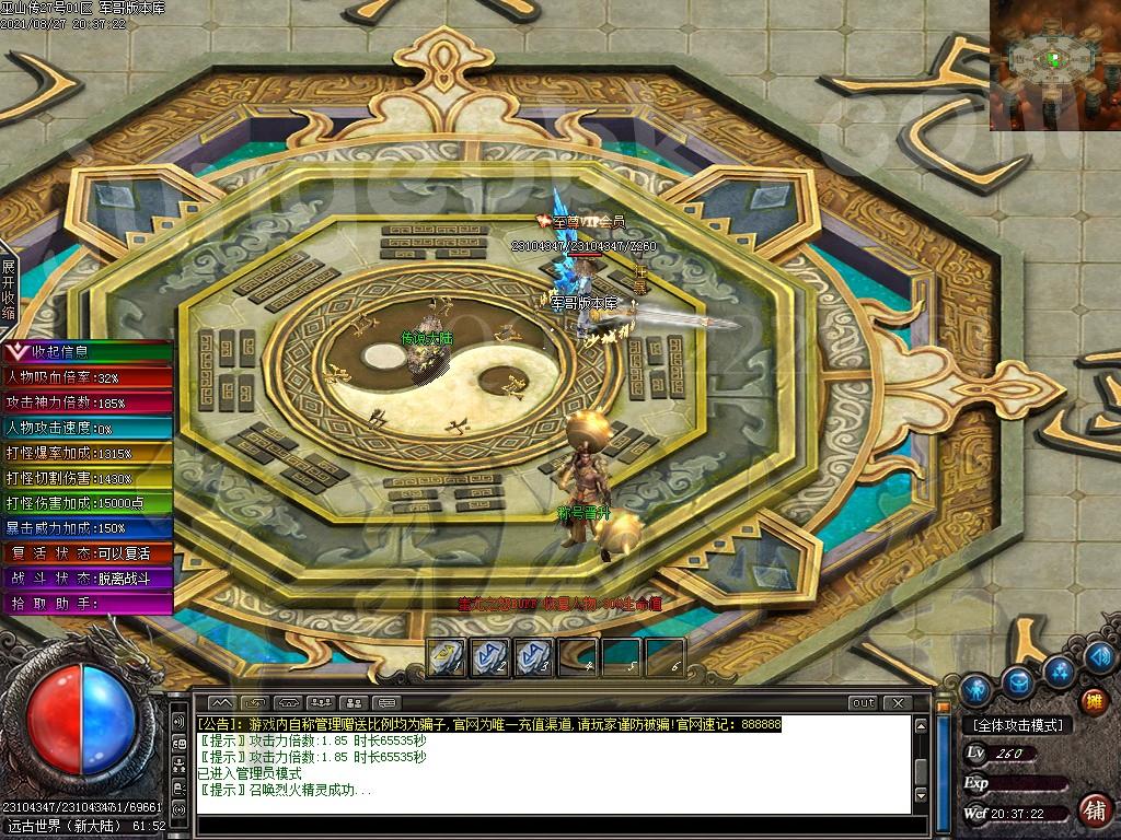 阴阳结界:      ◆◆◆阴阳界主◆◆◆                          -- 30分钟刷新,随机必爆中土、北阴专属装备,21转材料,必爆金盒