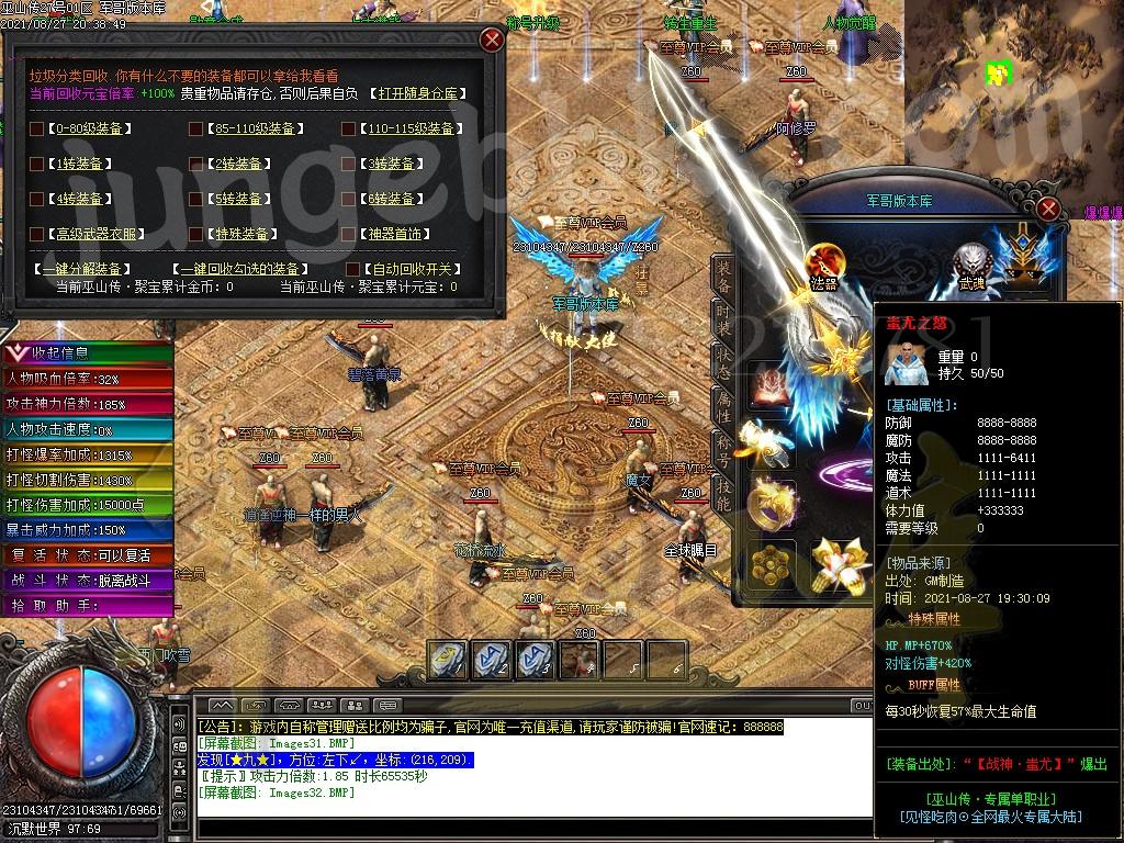 [GOM引擎] 18-912独家大服巫山传专属大陆单职业传奇版本-带假人-ESP插件-光柱-自动回收-沙城捐献-Y