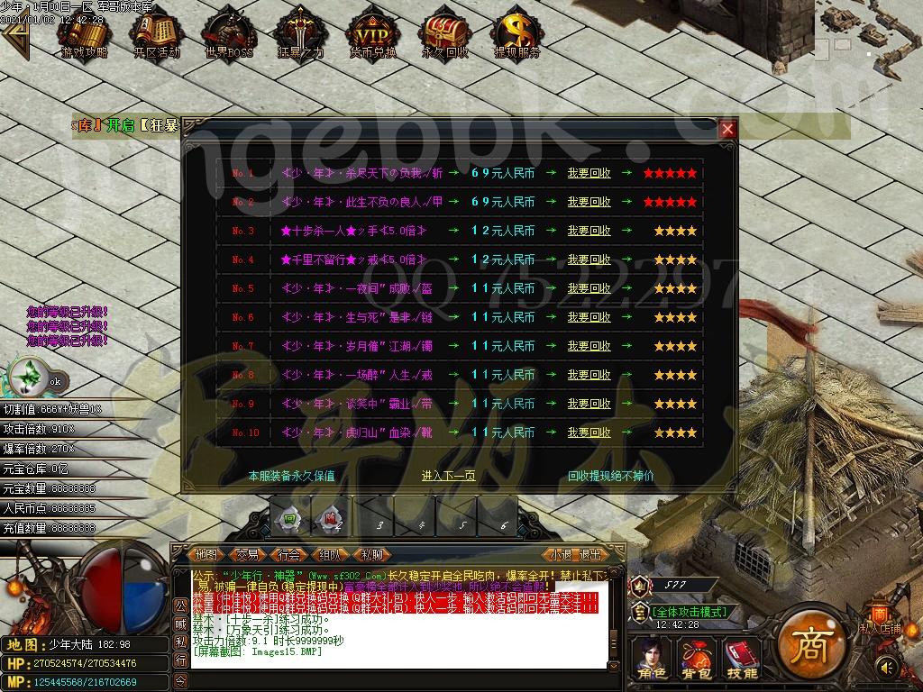 <【货币分类】:元宝、积分、Rmb点、打到就是赚到,多出来的摆摊卖给其他落后的玩家!