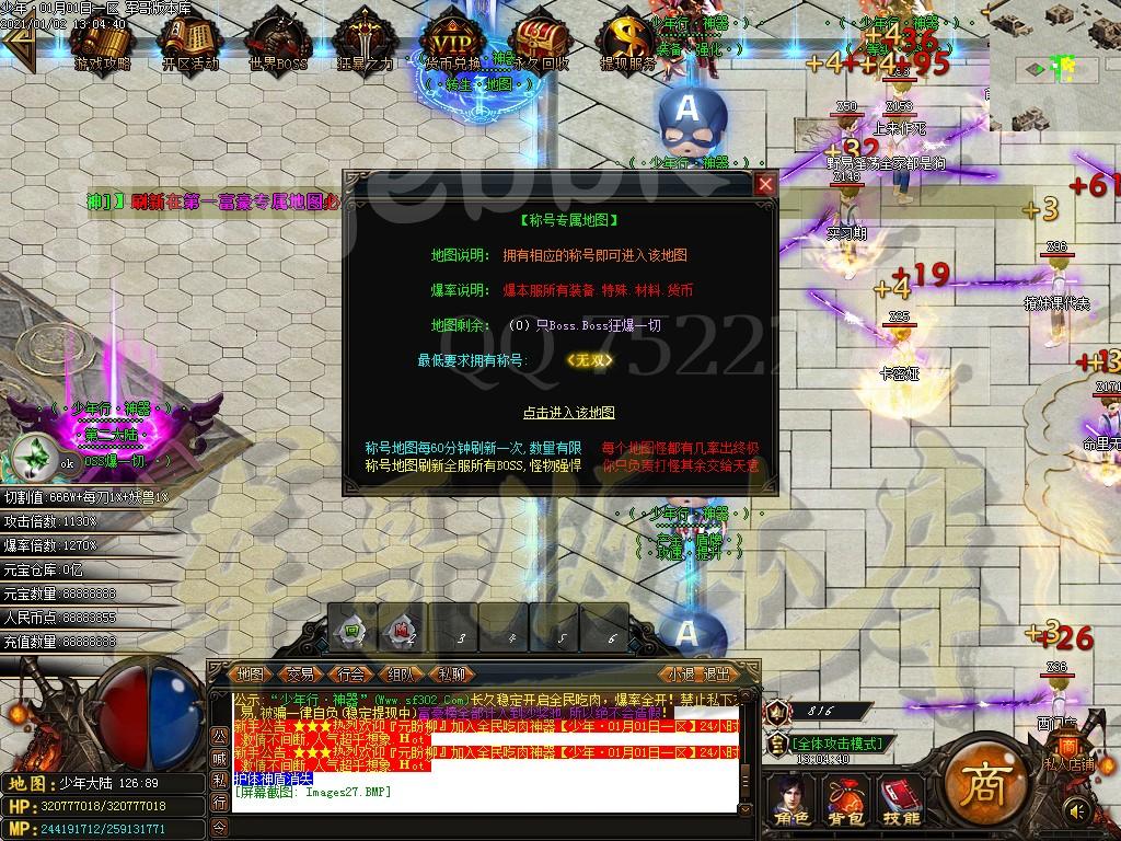 <本服所有地图都可以进入,散人可以打怪爆终极是非常正常的,只要花时间你就能成功!