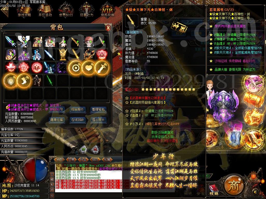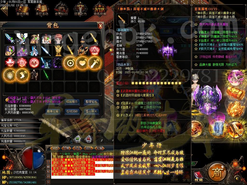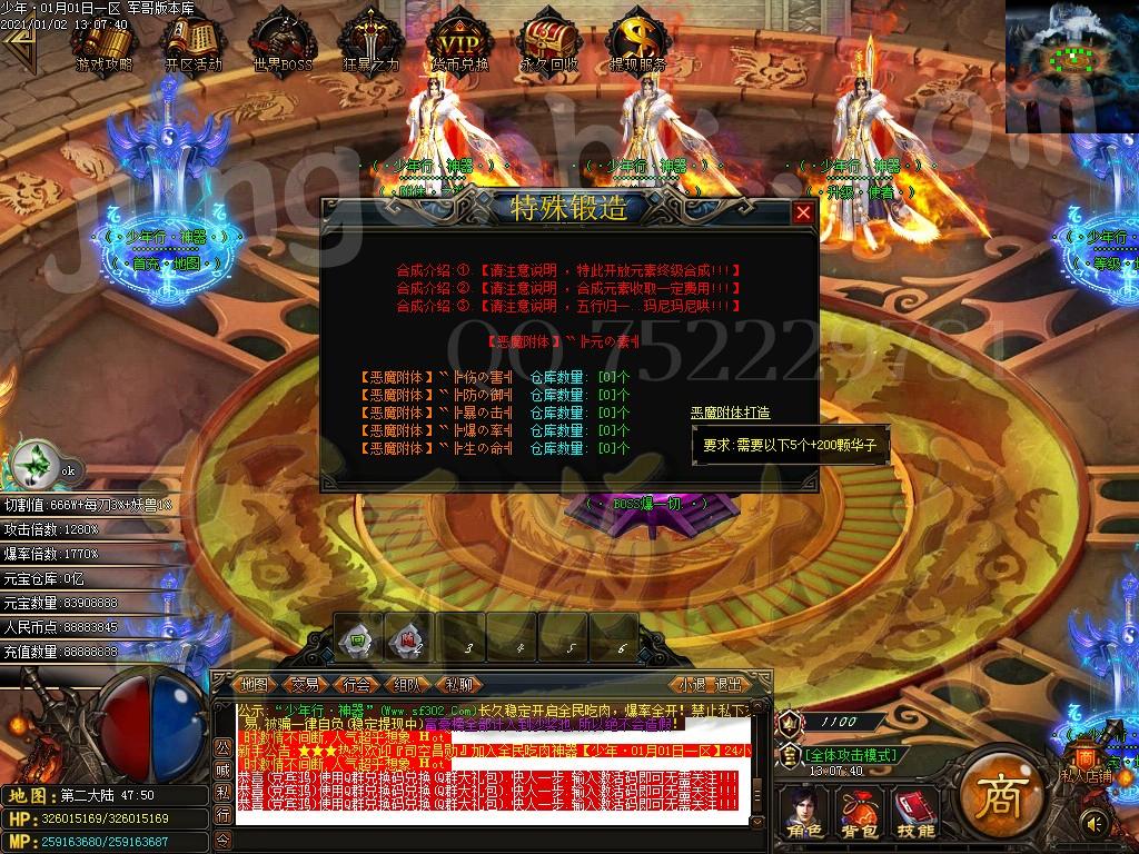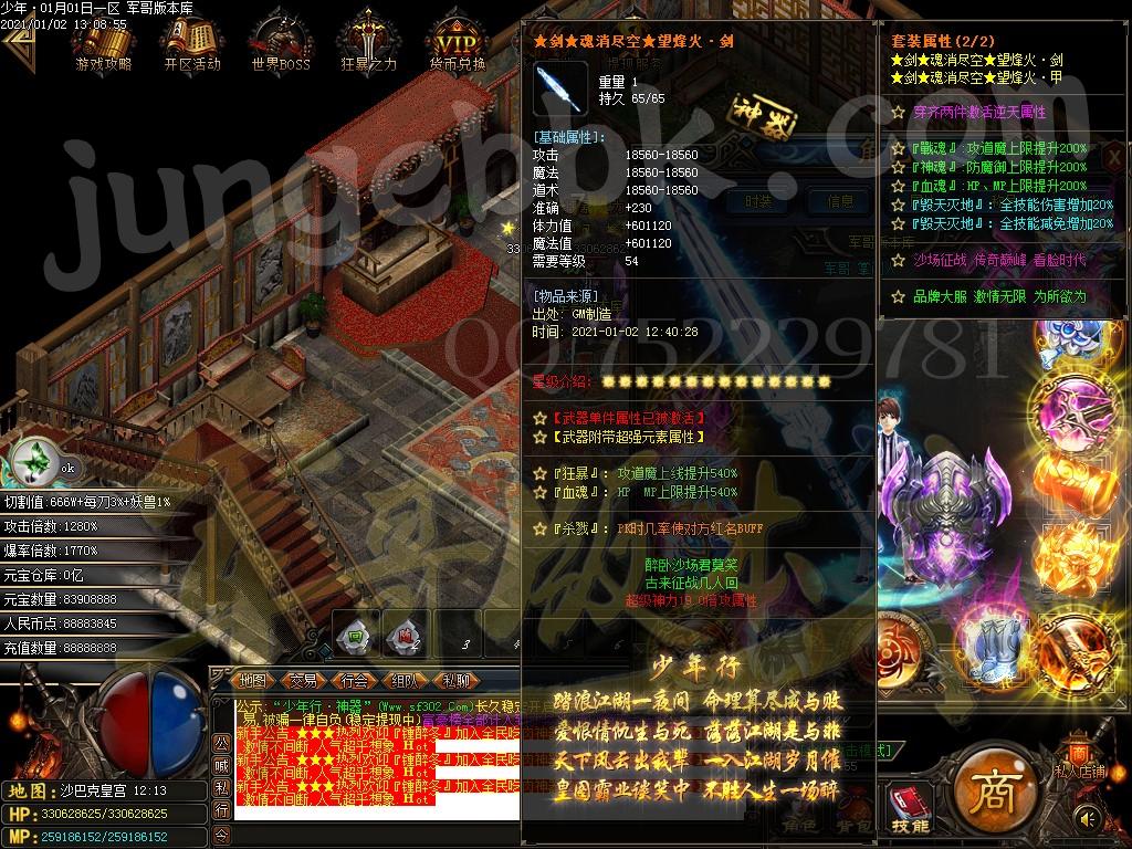 <装备介绍:本服共58套装备、5套倍攻首饰、时装15套、符文5套、特殊各18套、爆率全开新手怪都爆终极!