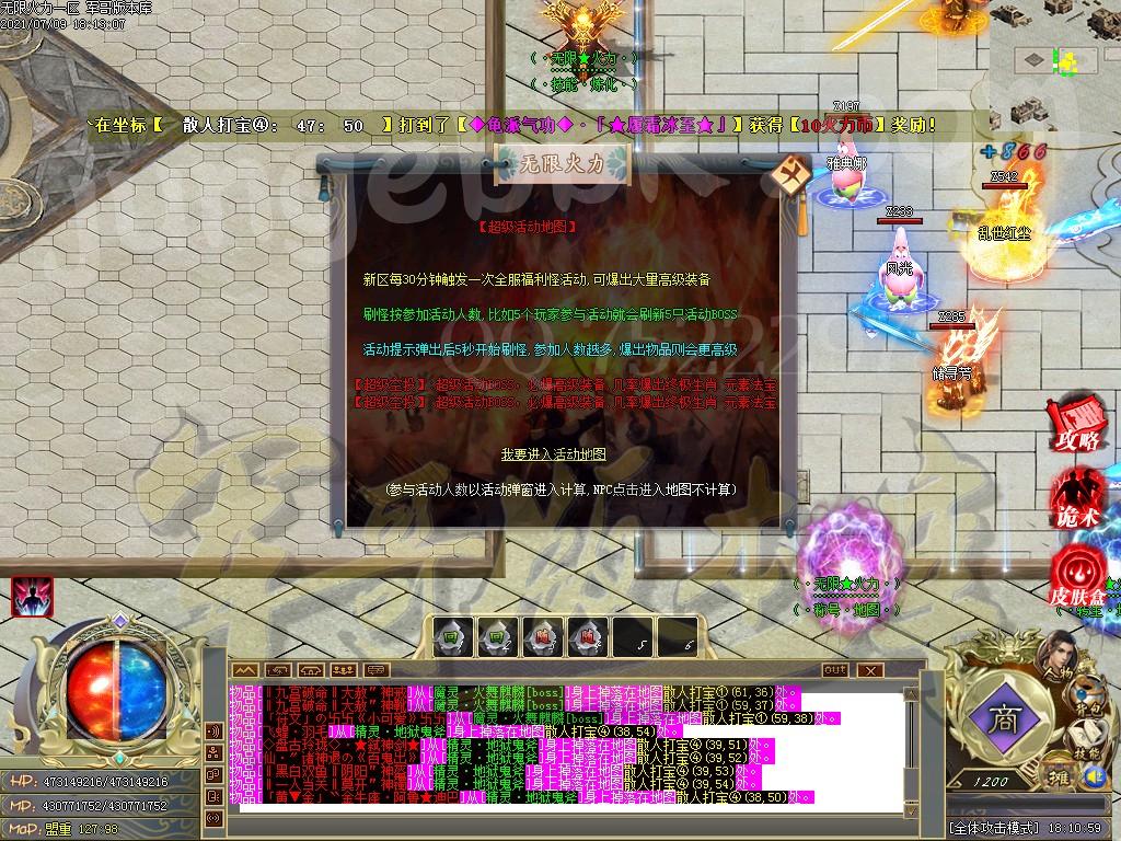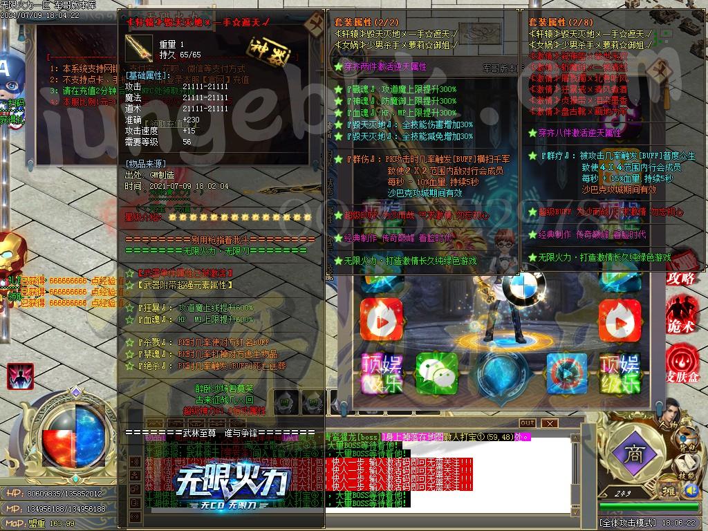 爆率全开.本服本着小怪爆终极的理念给玩家一片天地.本服只要你有时间绝对能打到终极套。