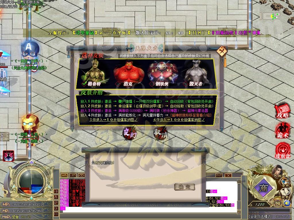 [GOM引擎] 18-693独家无限火力无限刀超变单职业传奇版本-带假人-PG插件-光柱-第三大陆-自动拾取