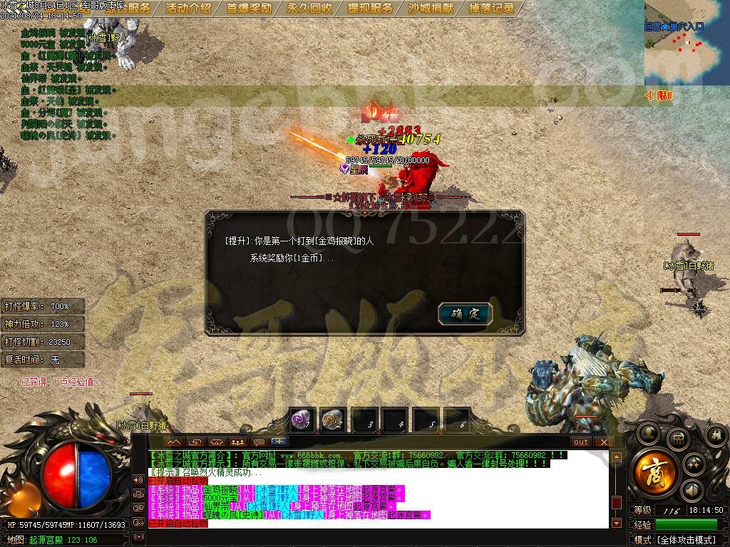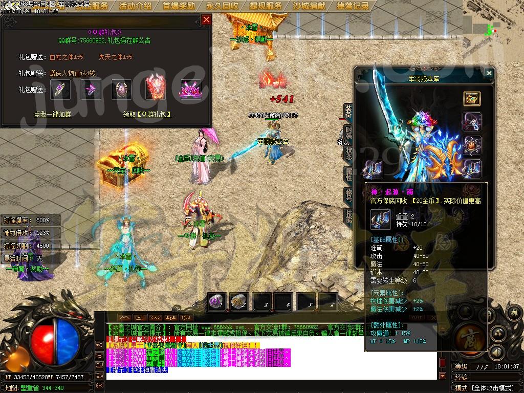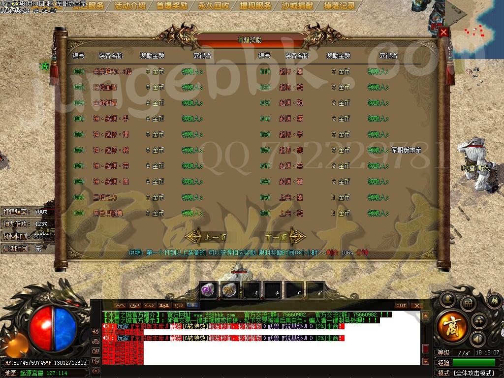 <30米捐献:可获得爆率+50%,刀刀切割妖兽500,获得护体神盾,半月弯刀
