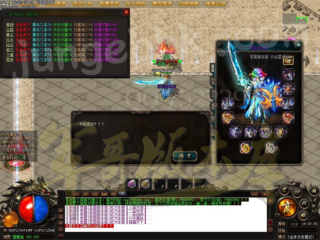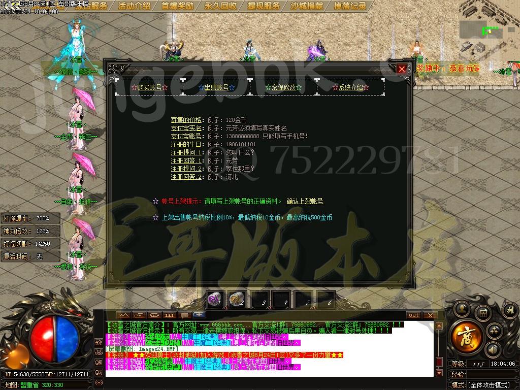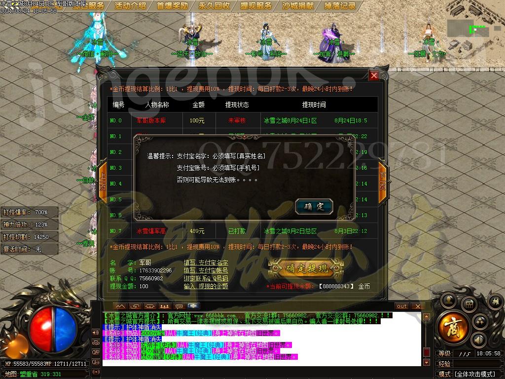 金币充值比例 1 :10   版本为正常开区端有问题联系QQ 616102345  处理