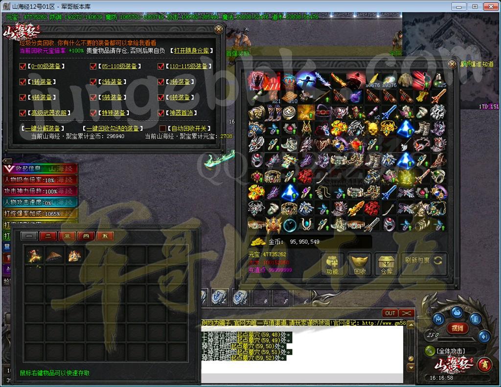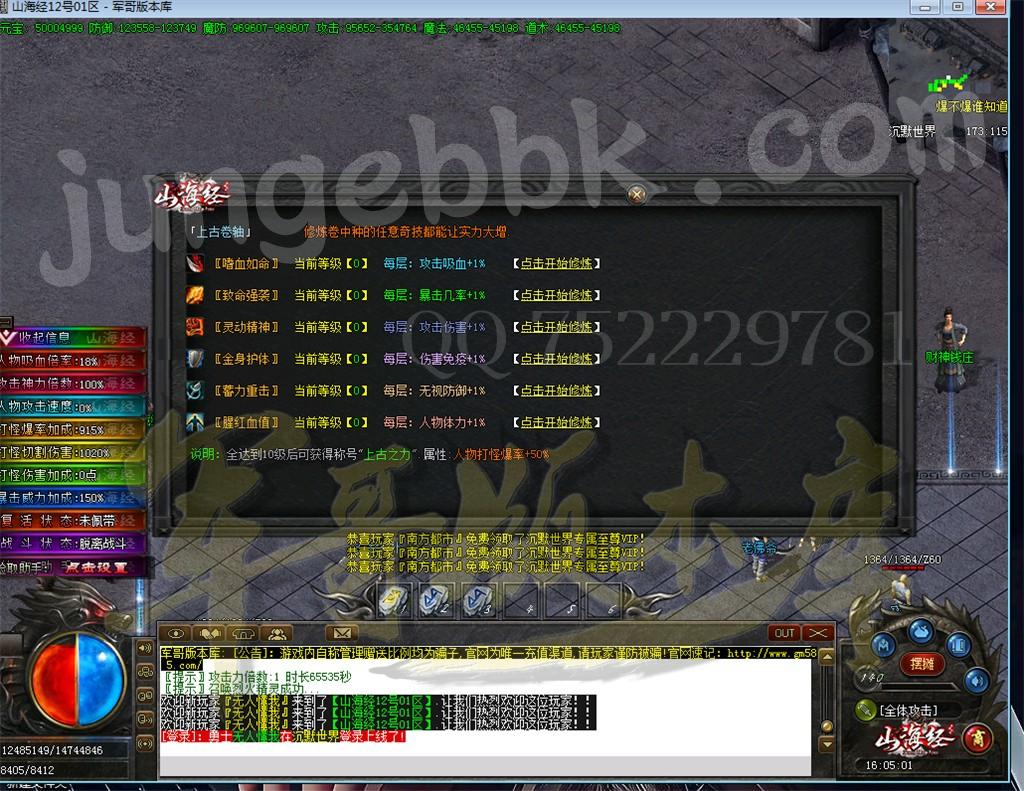 土豪玩家: 1. 山海经·北冥专属 勋章:需要18个山海经风向标LV.4[测试充值110元元宝] 2. 遗忘勋章:需要遗忘图纸+1个北冥专属勋章 或 2个山海经·北冥专属 勋章合成[测试充值280元元宝]-遥远的绿洲合成 3. 有能力可以将前期称号进阶,全部升满需要4500万元宝[前期追求爆率直接升,称号卷所有怪都有爆出] 4. 打材料进阶神魔[元素.攻速] - 山海经·至宝[攻速] - 觉醒[等级,9重附带牛XBUFF]