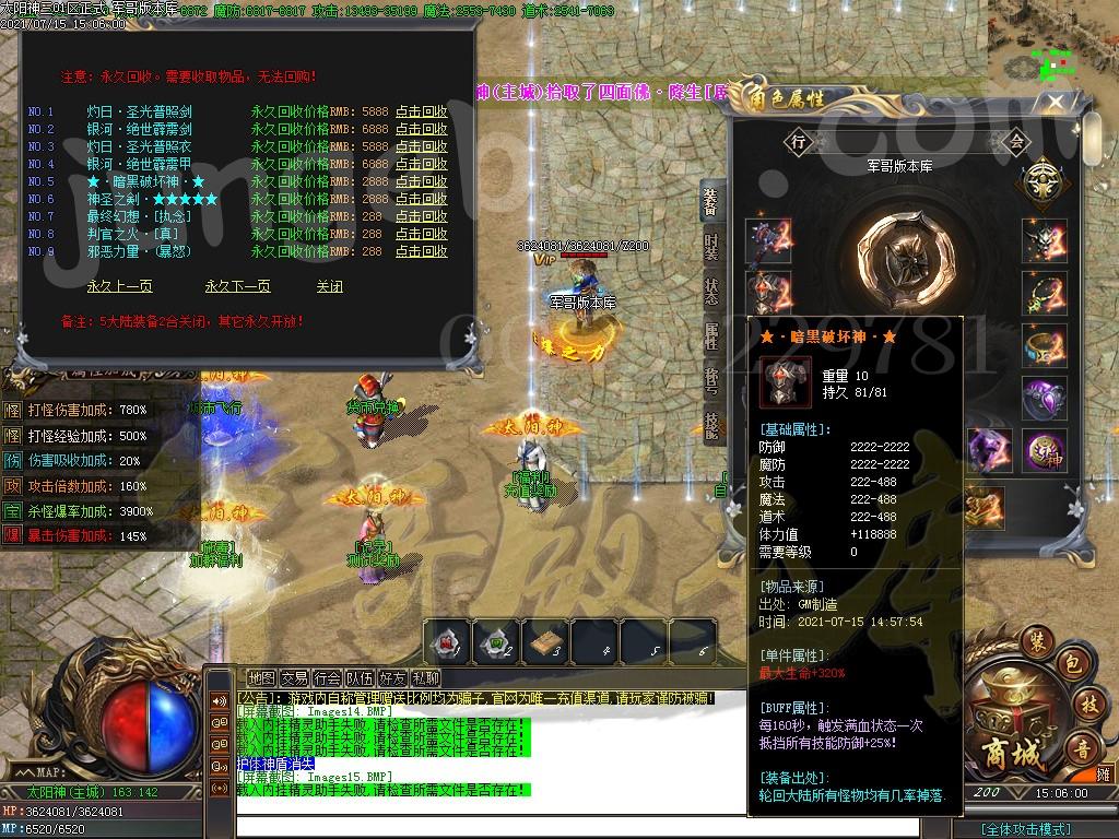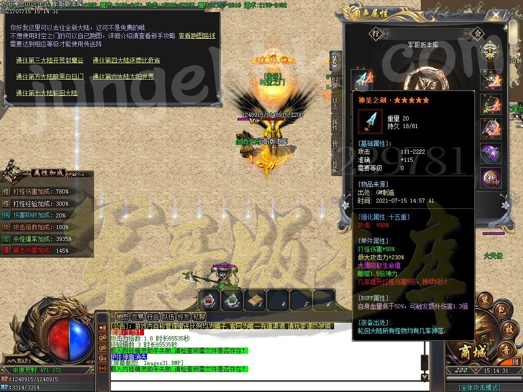 [GOM引擎] 18-722独家太阳神专属神器单职业传奇客户端-带假人-PG插件-光柱-自动回收-沙城捐献