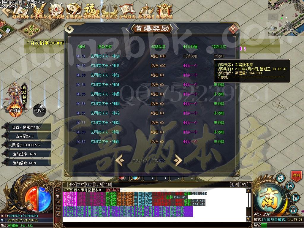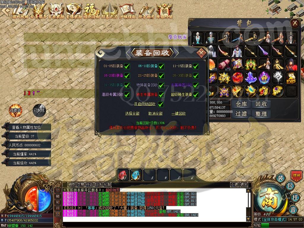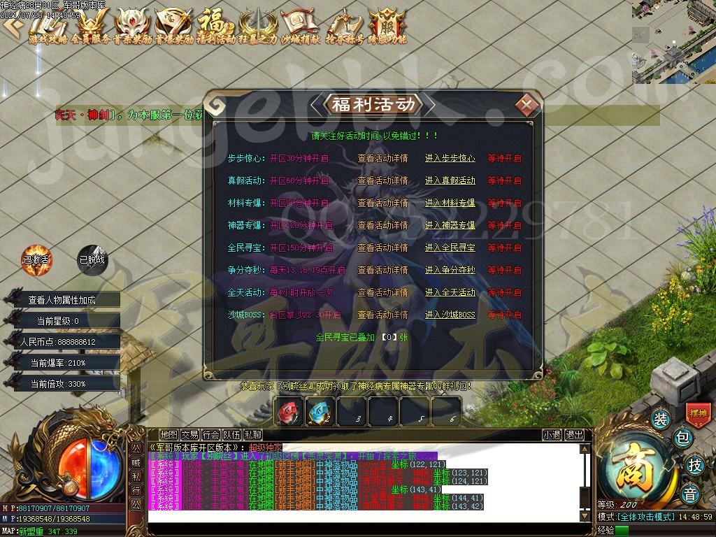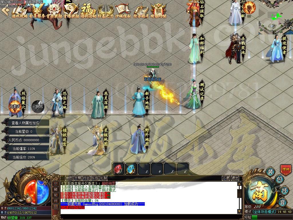 版本介绍:盛龍顶赞(38元) 带自动捡物 版本耐玩 活动超多 爆率超高 详情游戏内查询