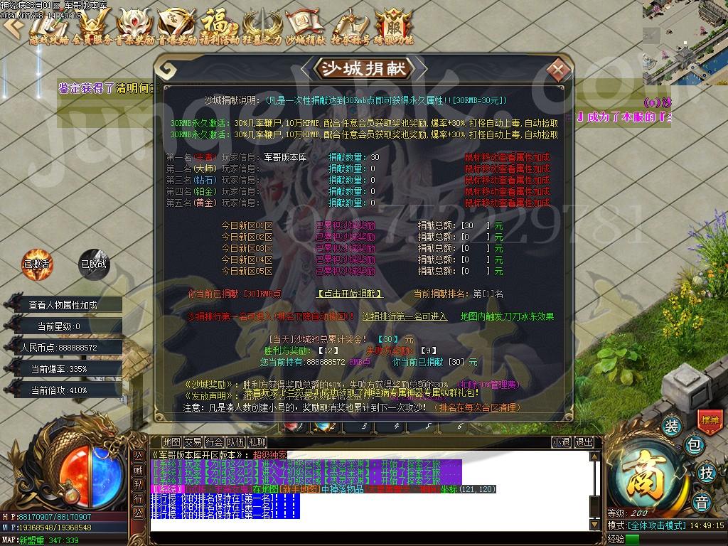 版本介绍:本服充值为火龙币 比例:1米=100火龙币 1米=100钻石 可
