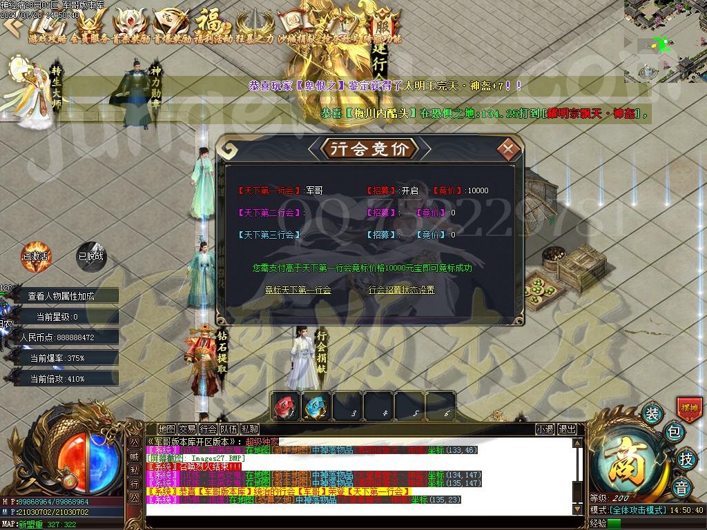 金币充值比例 1 :10   版本为正常开区端有问题联系QQ 616102345  处理