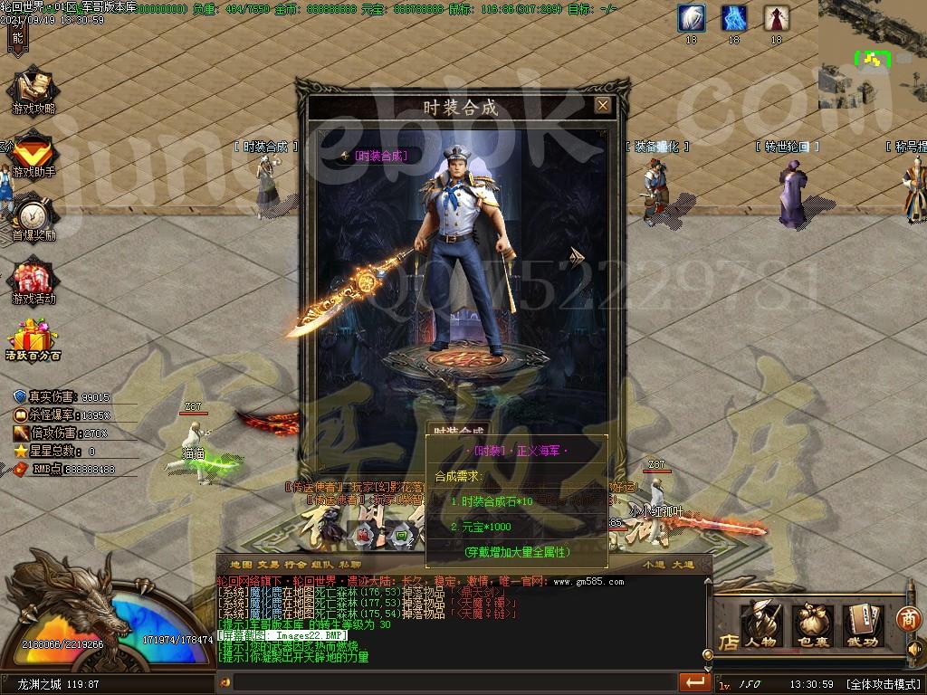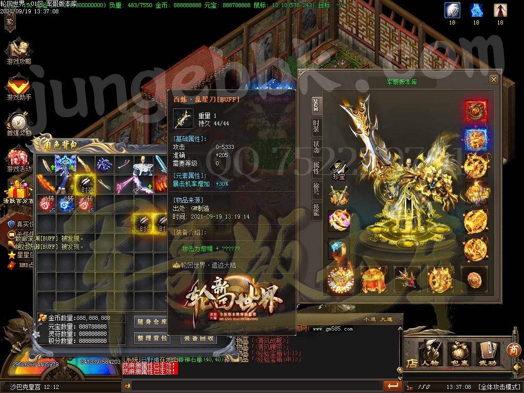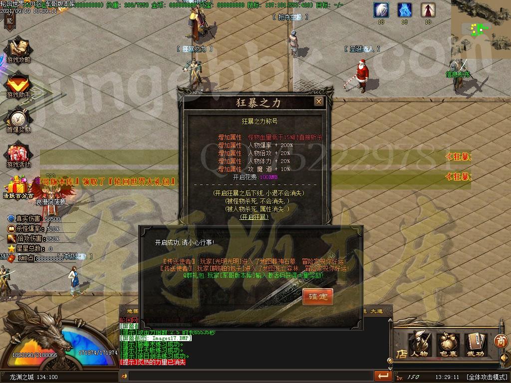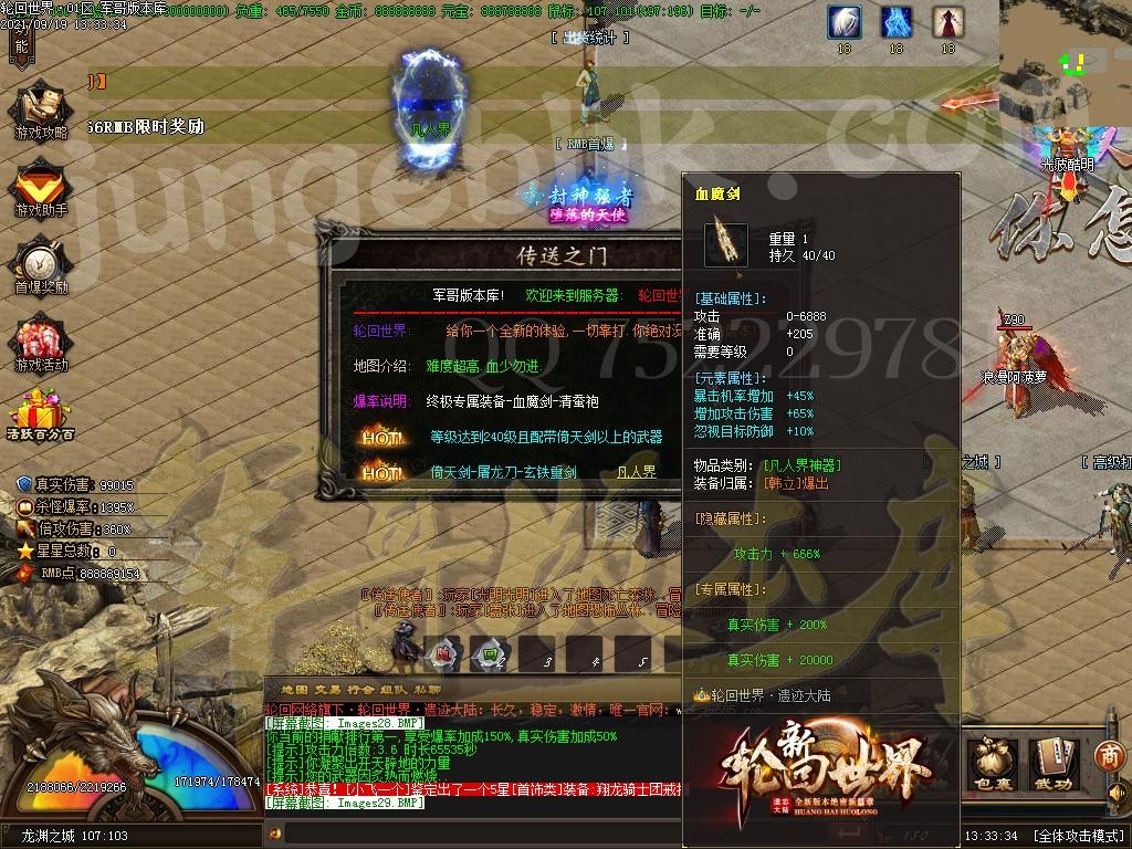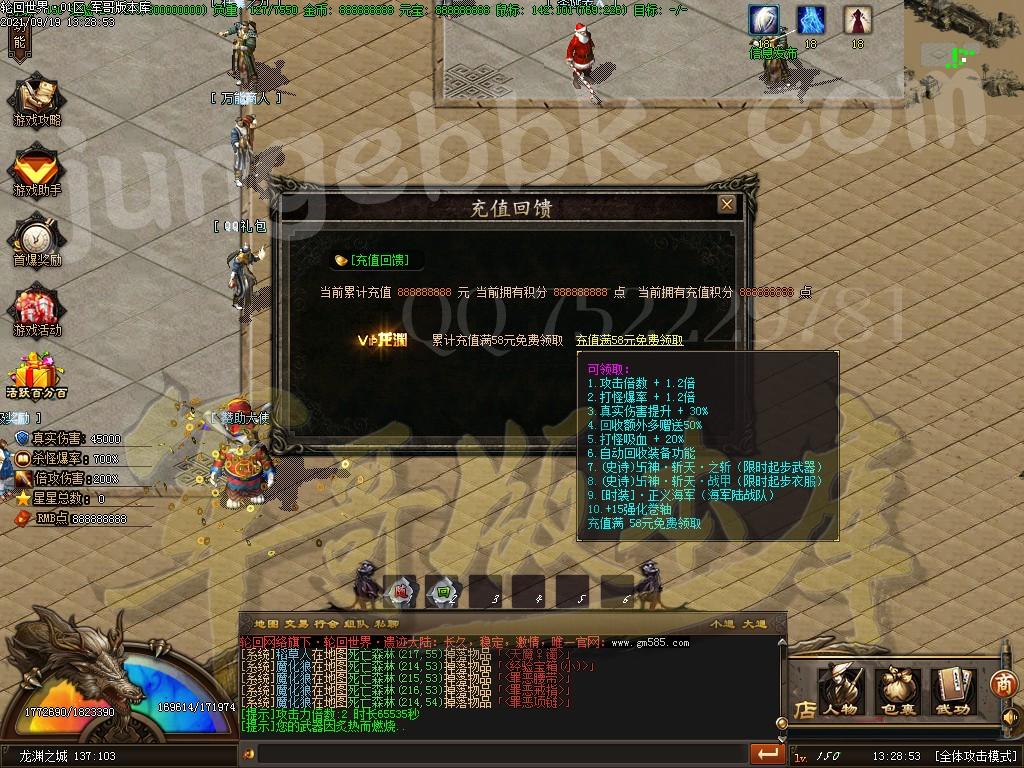 充值比例 1.30 1.5000元宝 10R点换5积分1000元宝 群礼包码 888888
