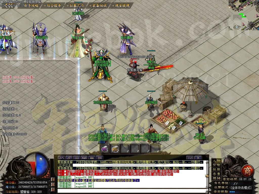 金币充值比例 1 :10   版本为正常开区端有问题联系QQ 616102345  处理