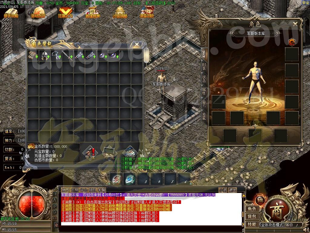 散人玩法:上线领取QQ群礼包,礼包附带基本切割和施毒术、自动捡取!去新手地图和元宝地图打,多打元宝快速升级然下大陆!