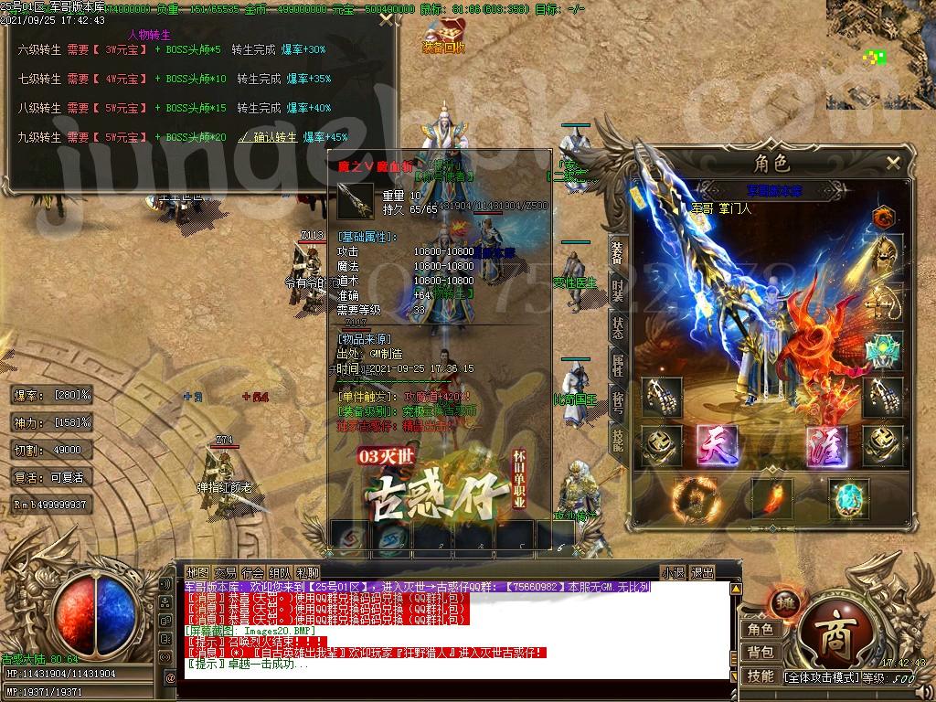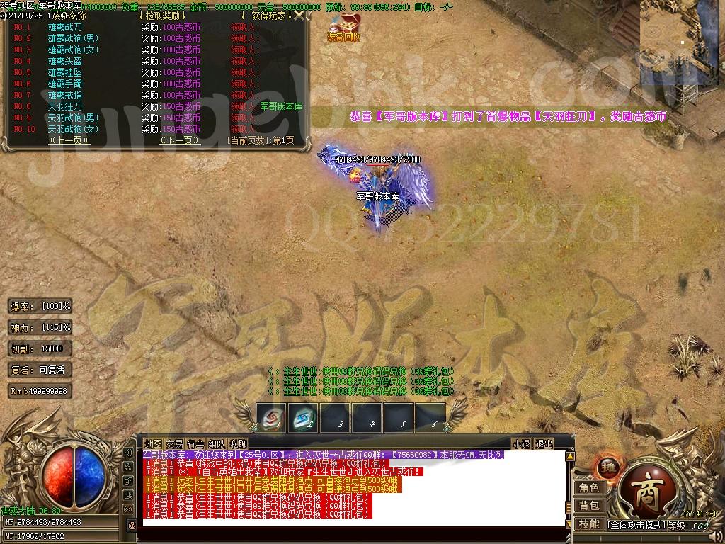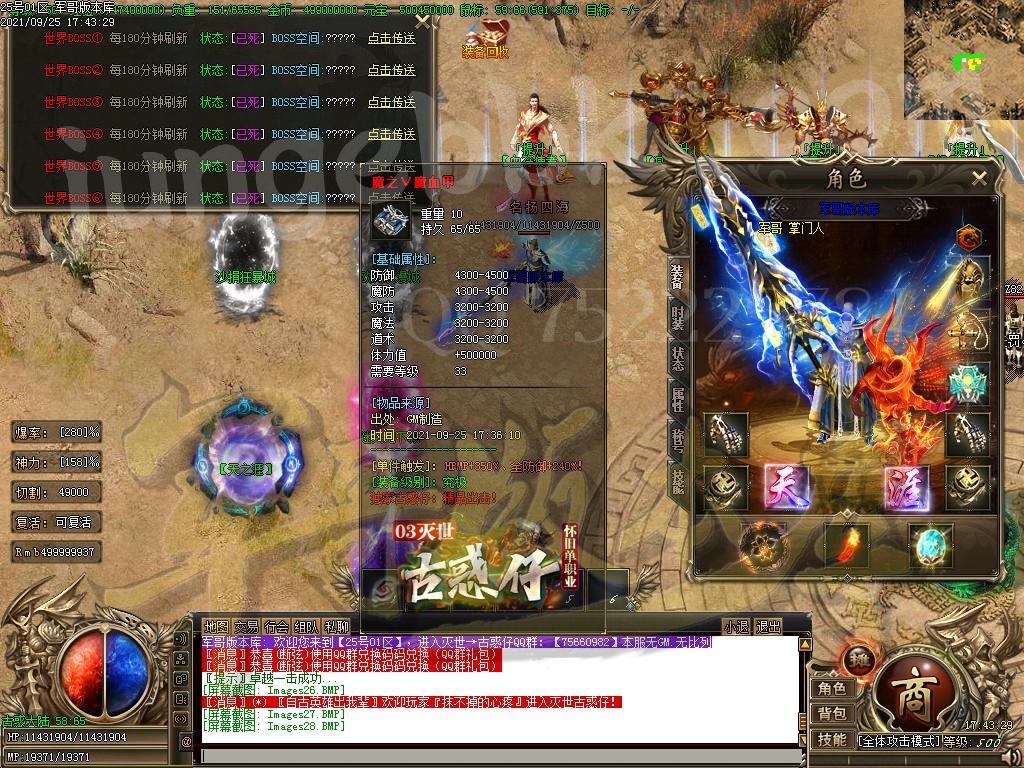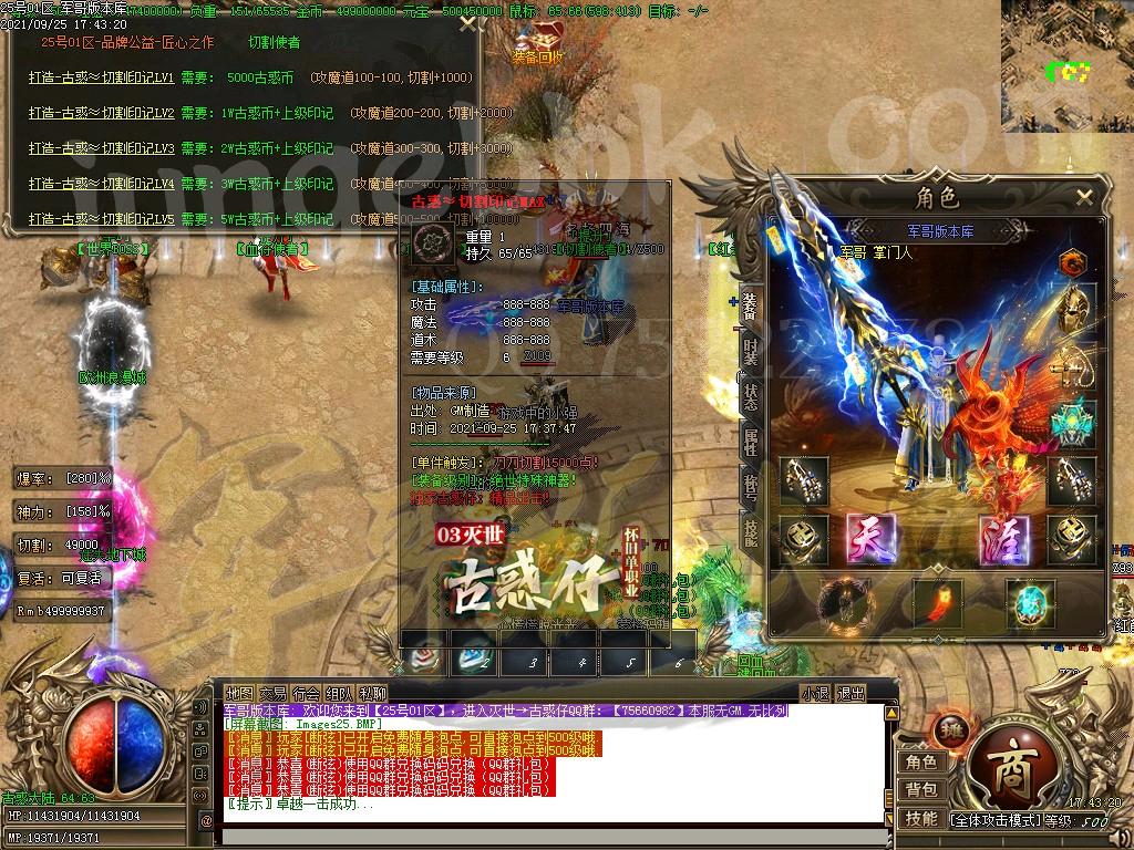 赞助充值后,快速合成各种特殊,不管是打怪还是杀人都稳稳的!(优先升级切割特殊)