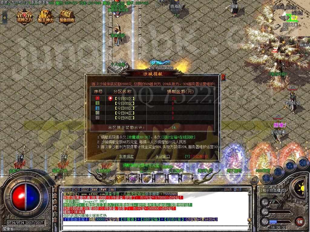 十倍爆率三职业传奇版本-带假人-光柱-沙城捐献-超级回收