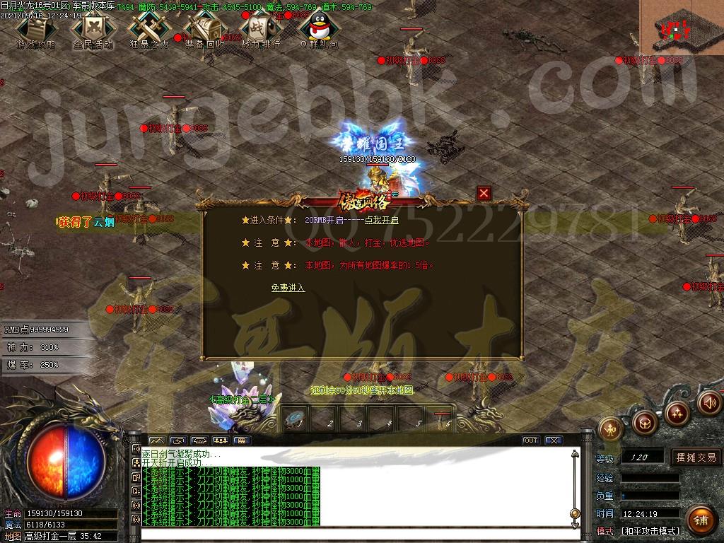 国王地图,开区二小时,刷新一只超级BOSS,必爆特殊或终极剑甲