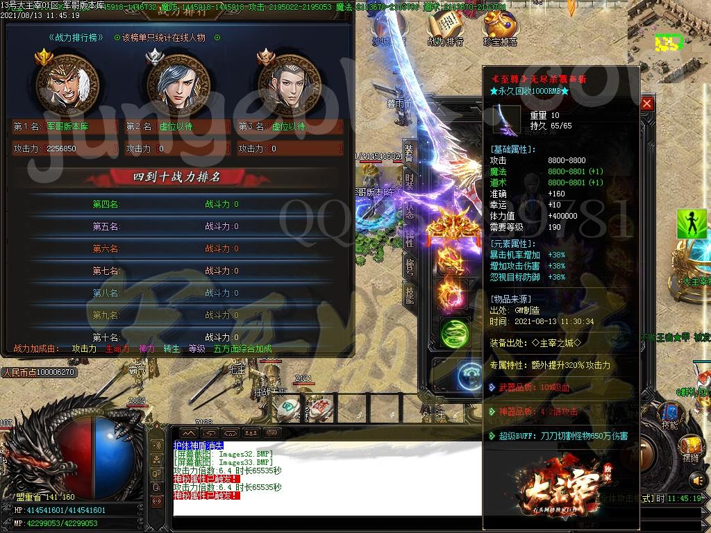 金币充值比例 1 :10   版本为正常开区端有问题联系QQ 616102345  处理