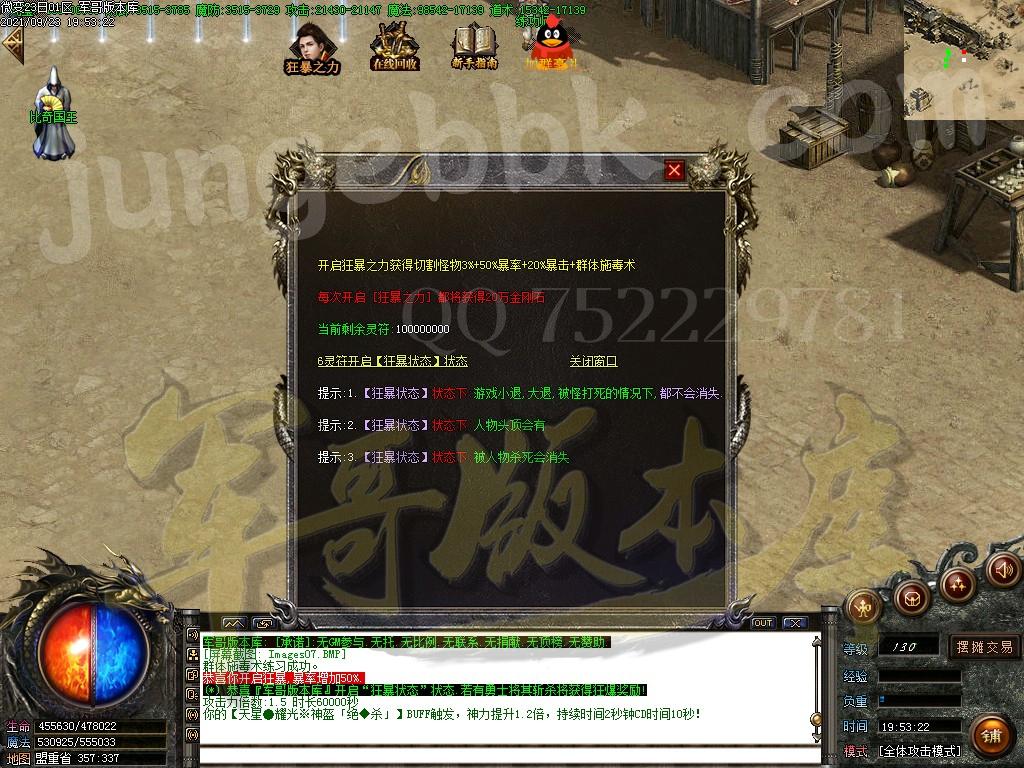 【游戏介绍】:为了对新人上线保护,开启需要转生后小退上线才有攻击力!