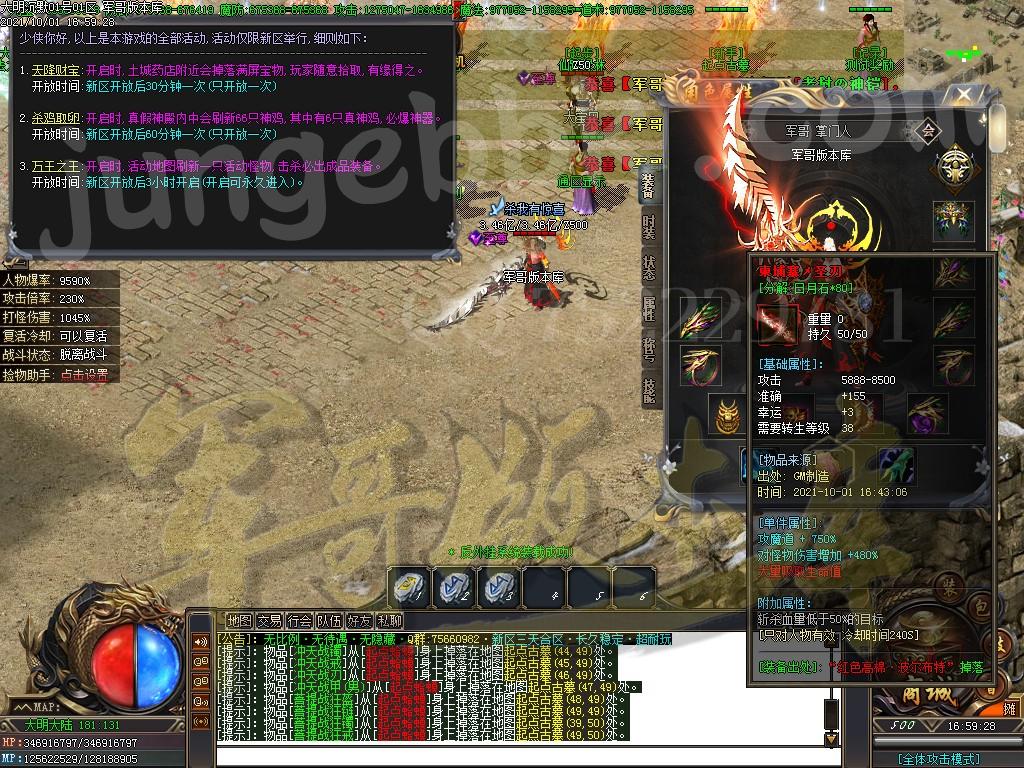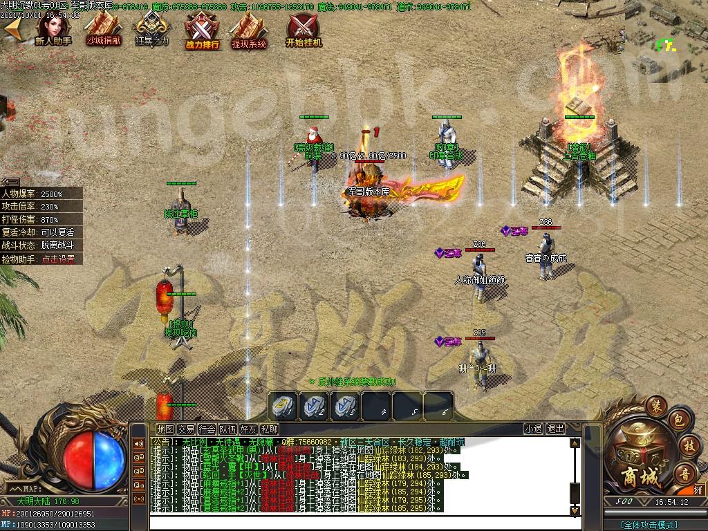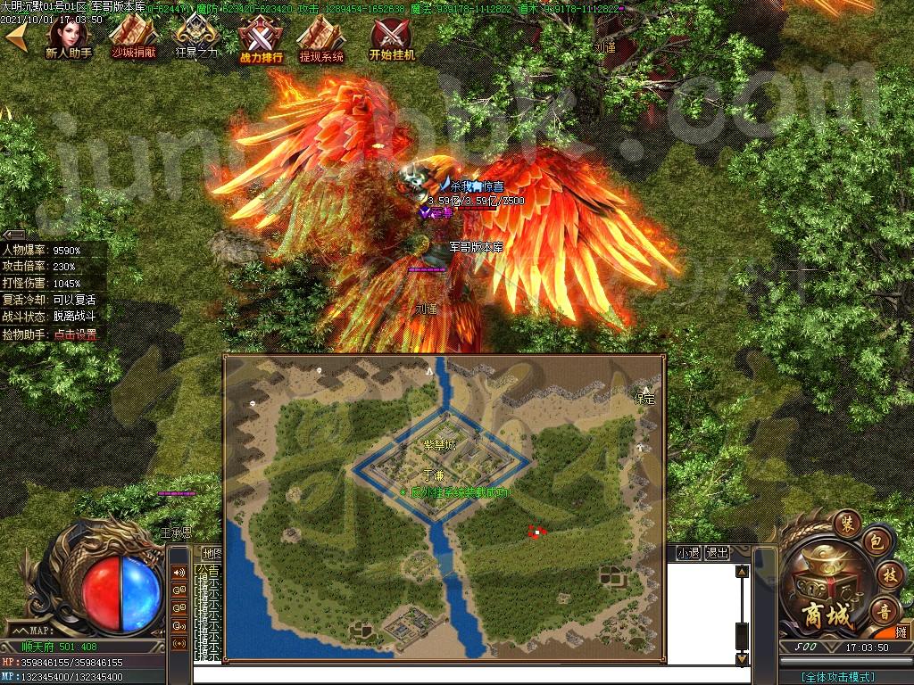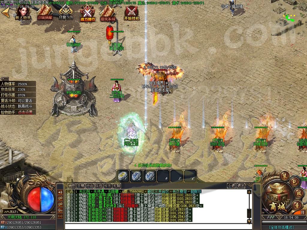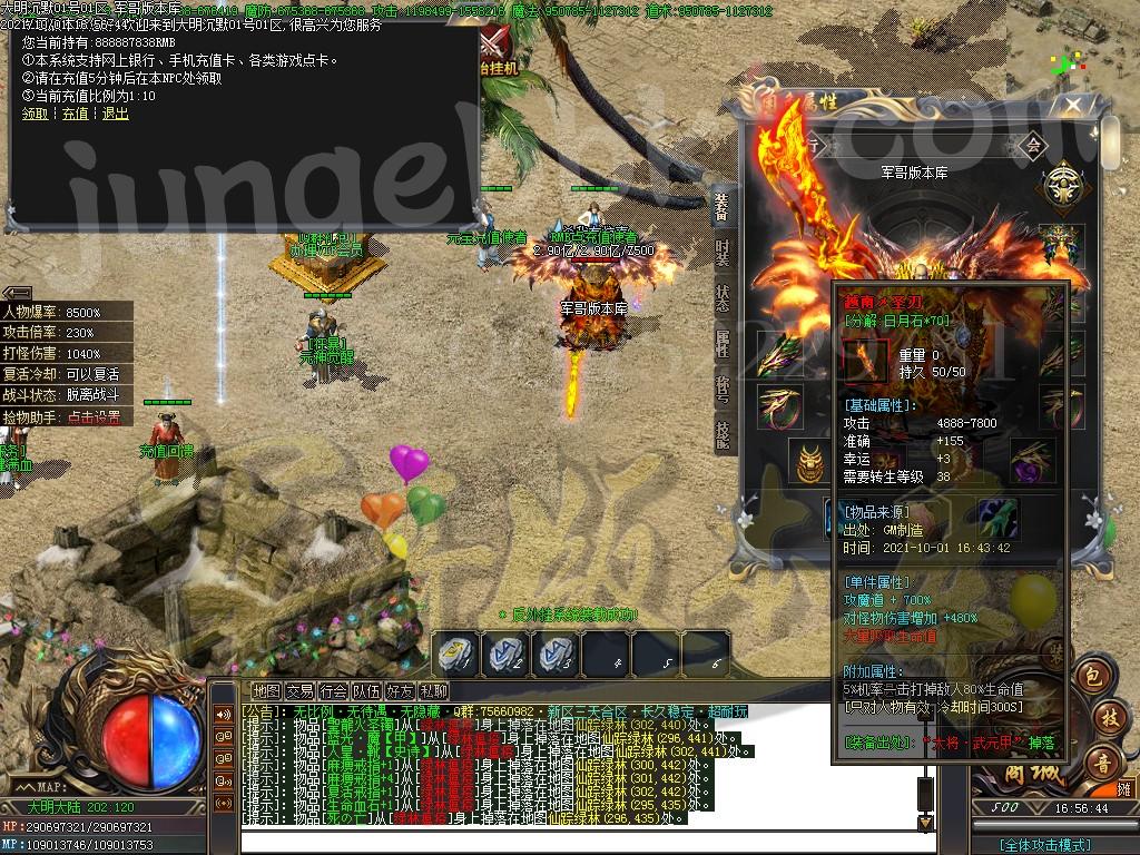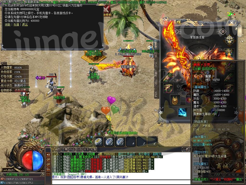 三:充值元宝金额达到1000元 杀怪爆率+2000%