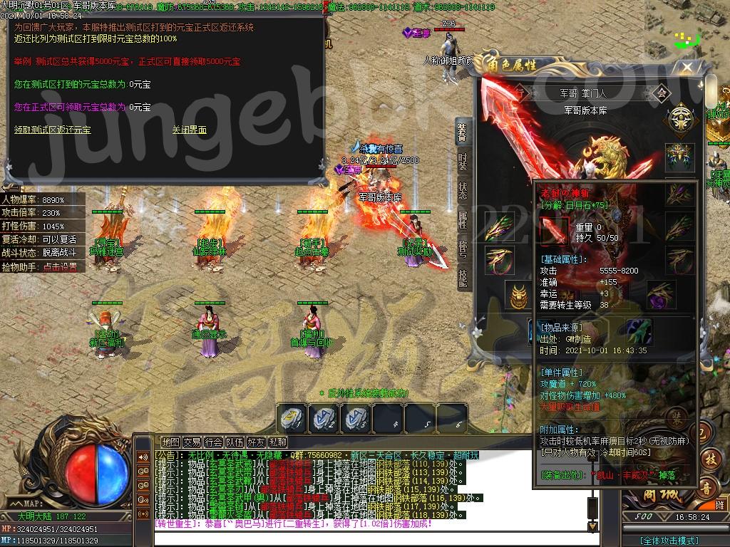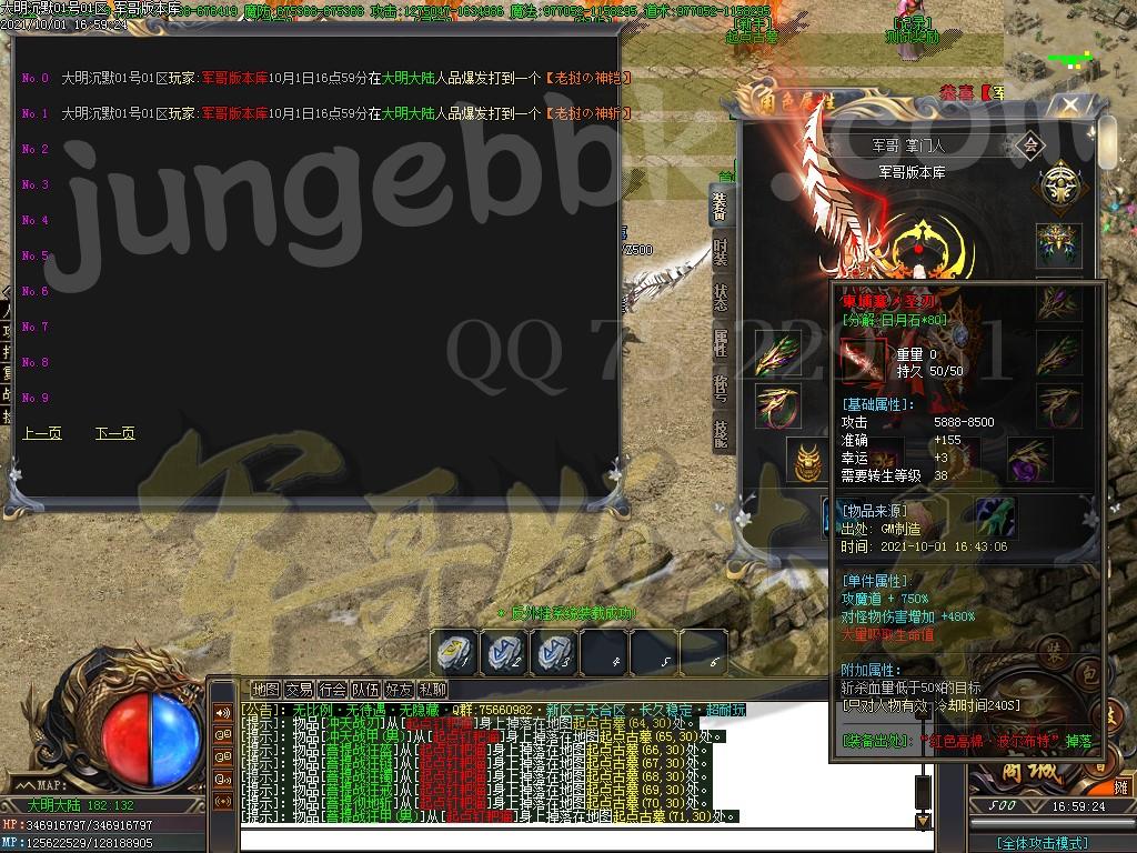【关于转生系统】:本服一共38转,每一转对应一个地图,你所做的就是撸怪撸怪再撸怪,站在土城是无法获得终极的。