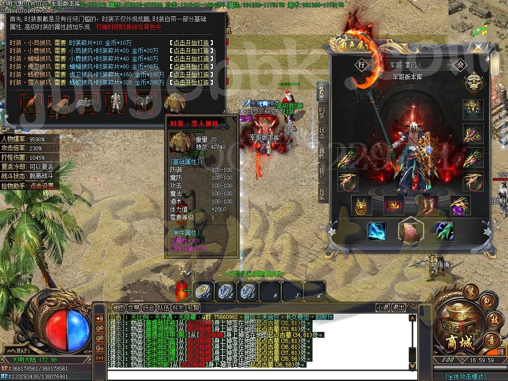 时装·魑魅魍魉=30%的几率触发鞭尸,杀怪爆率+2000%、防全毒-------------上级时装免费二合一,或用点升级
