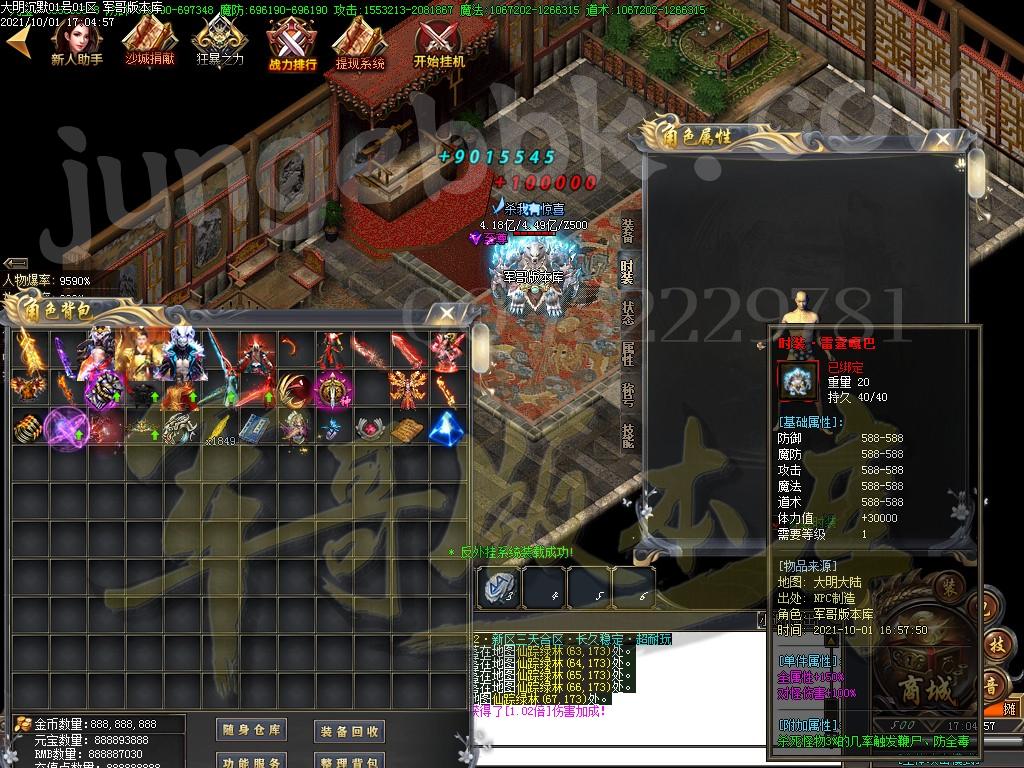 时装·玄妙入神=50%的几率触发鞭尸,杀怪爆率+3000%、防全毒-------------上级时装免费二合一,或用点升级
