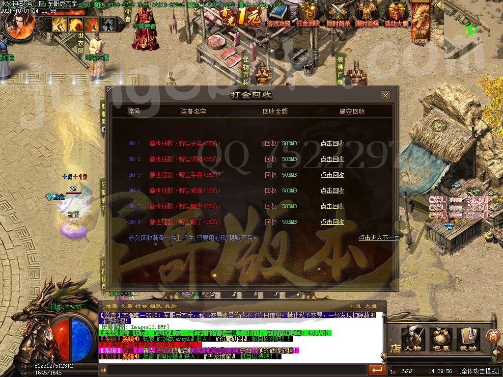 [GOM引擎] 19-065独家冰火神器公益单职业传奇服务端-带假人-PG插件-光柱-自动回收-沙城捐献
