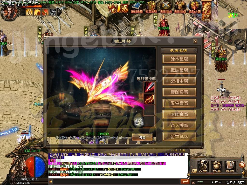 (8)开始循序渐进,攻击、血量都有提升的时候就要开始打高级的怪了,等攻击达到3W左右的时侯,去皓月站台主要爆15阶以上武器和衣服,这个要看人品。