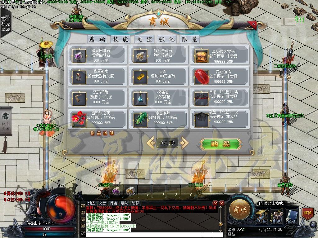 金币充值比例 1 :10   版本为正常开区端有问题联系QQ 616102345  处理