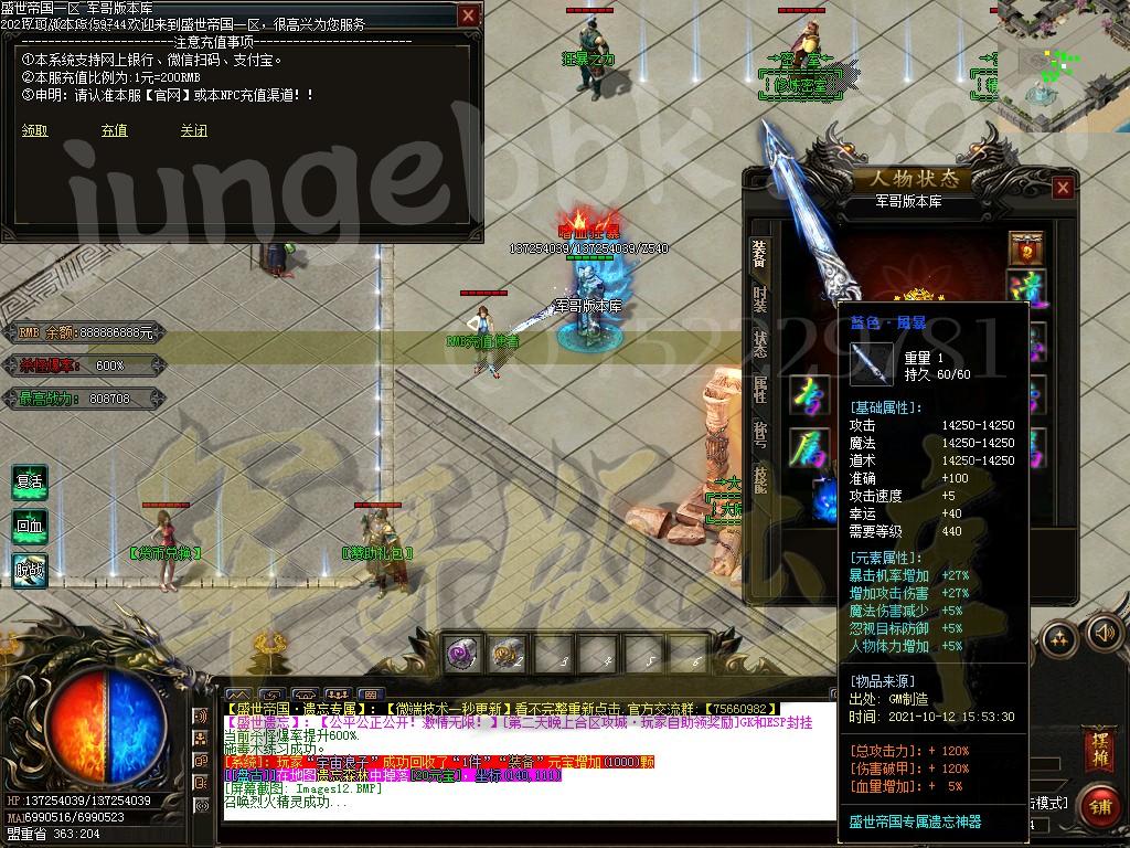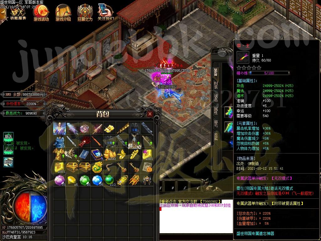 帝国专属终极大陆介绍:本服终极大陆,所有怪物,地图,装备,属性大服提升