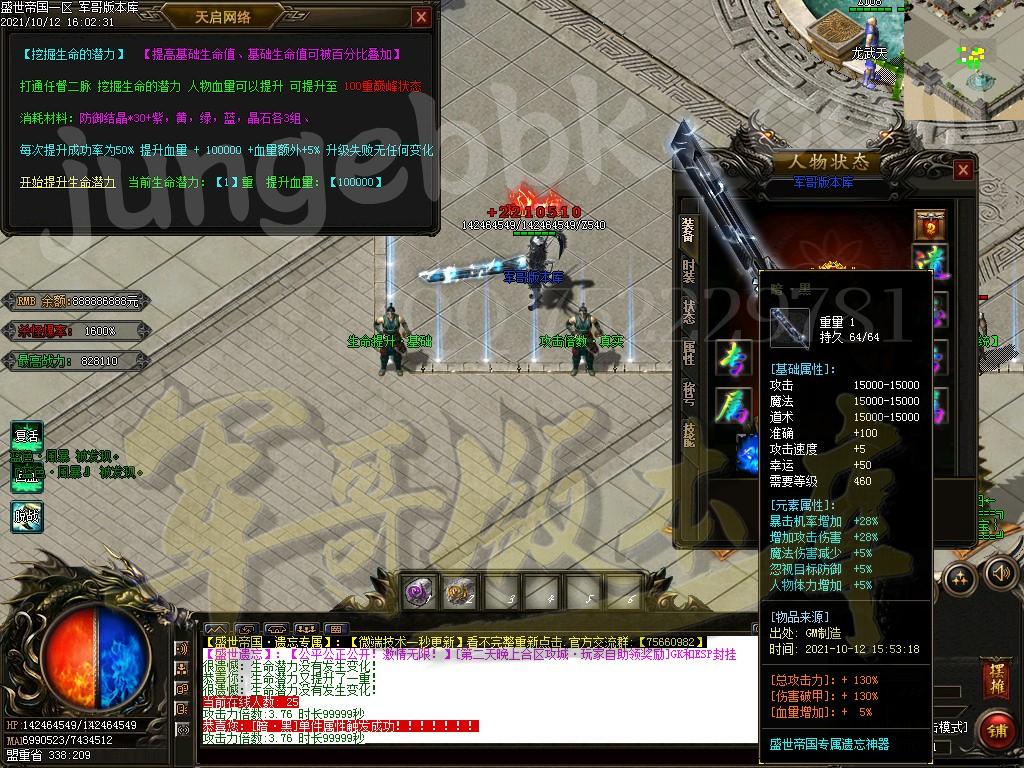 土豪路线:打怪发展第一神器.开启国王账号:共100000 = 500元