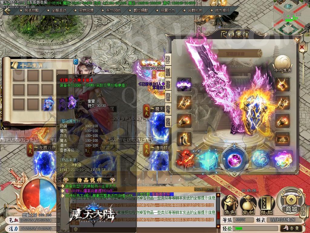 装备回收价格不会设置虚高打不出来的那种,本服所有装备包括顶级装备BOSS都有几率爆出,诸多玩法!