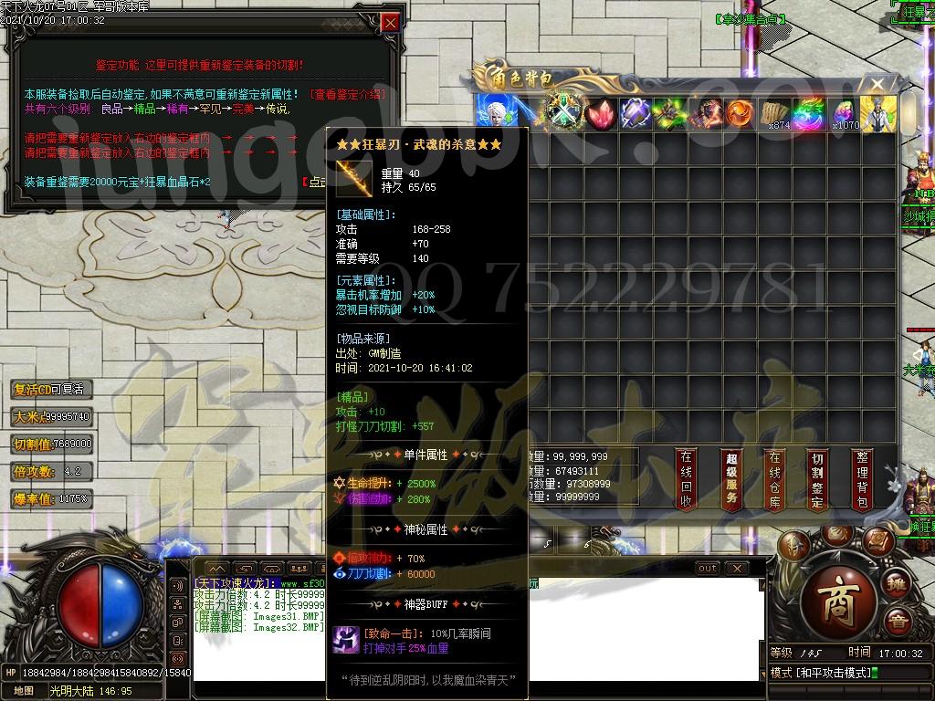 ②:QQ加群礼包一定要领取、有固定的切割和技能、还有打怪爆率加成。