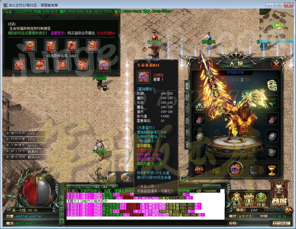 金币充值比例 1 :10   版本为正常开区端有问题联系QQ 616102345  处理