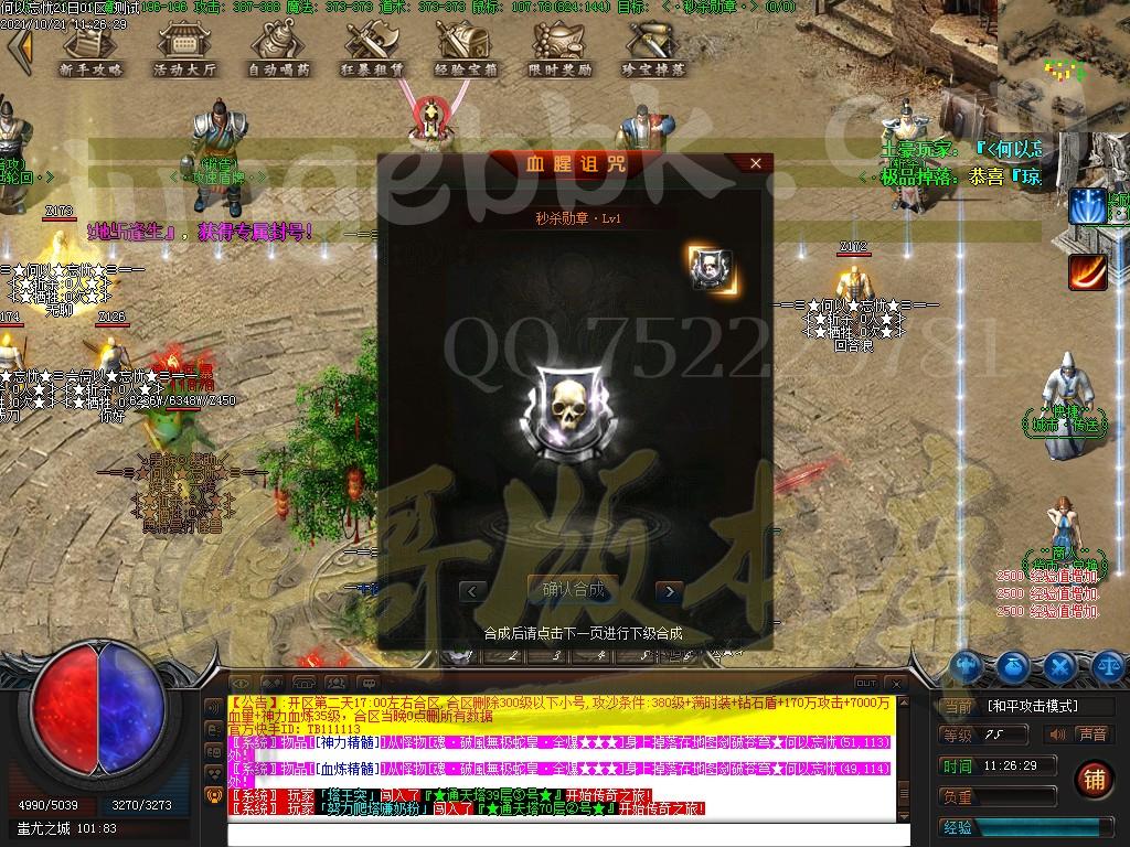 金币充值比例 1 :10   版本为正常开区端有问题联系QQ 616102345  处理