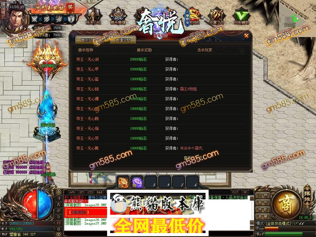 小大金:赞助礼包+沙城捐献+狂暴 让你快速起飞 下图直接干抢占首杀首爆,无线刷各种材料给玩家,