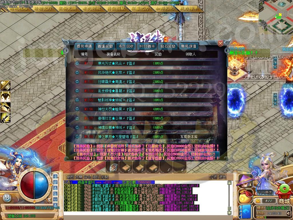 ◆《公告》限时奖励和永久回收装备几百件单区数十万元奖励