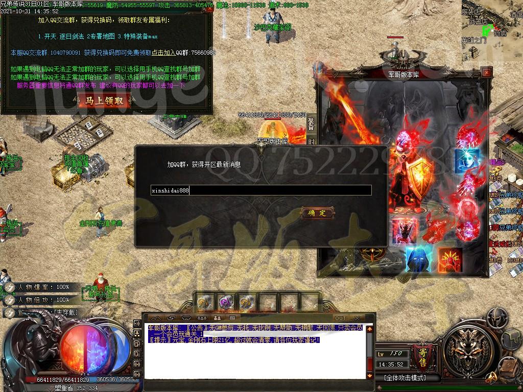 散人玩法:上线就送5级图腾,5级血石,领取QQ礼包:送5级战鼓、5级红莲、勋章max,利用召唤