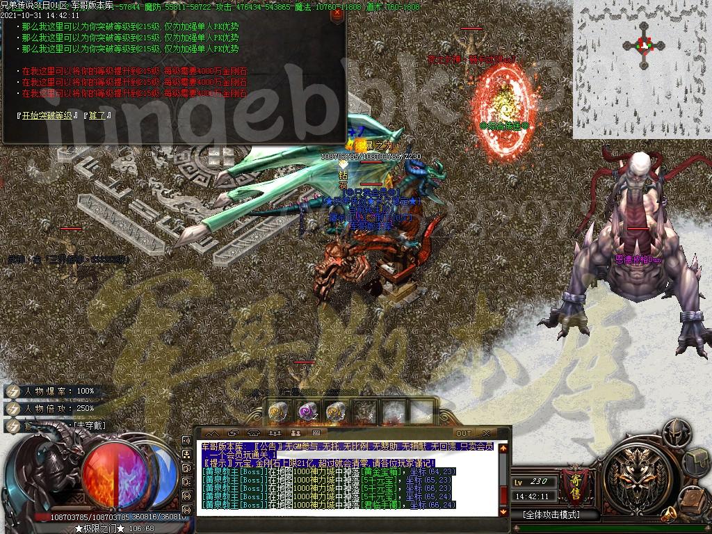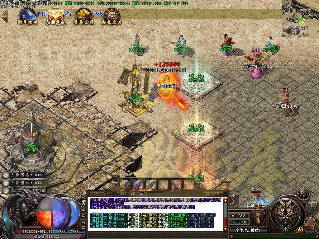 <特别嘱咐> 本服元宝携带上限是21亿,元宝超会自动清零,60-80万战力地图每秒消耗元宝,元宝清零后会自动传出,挂机玩家请注意!!!!