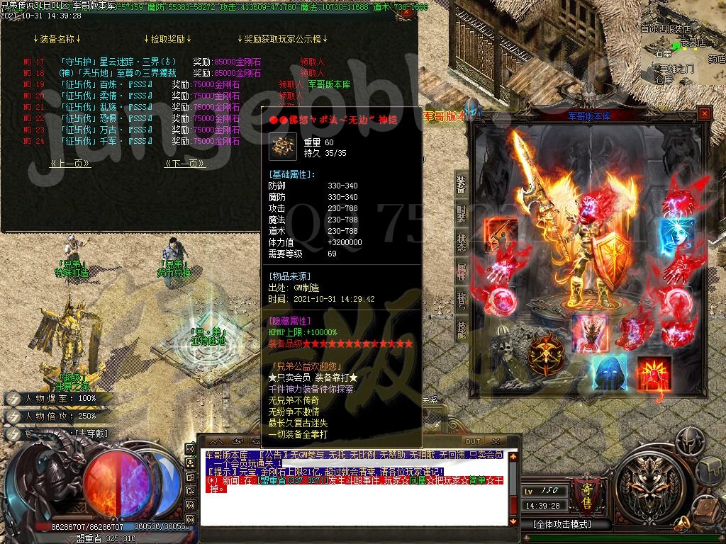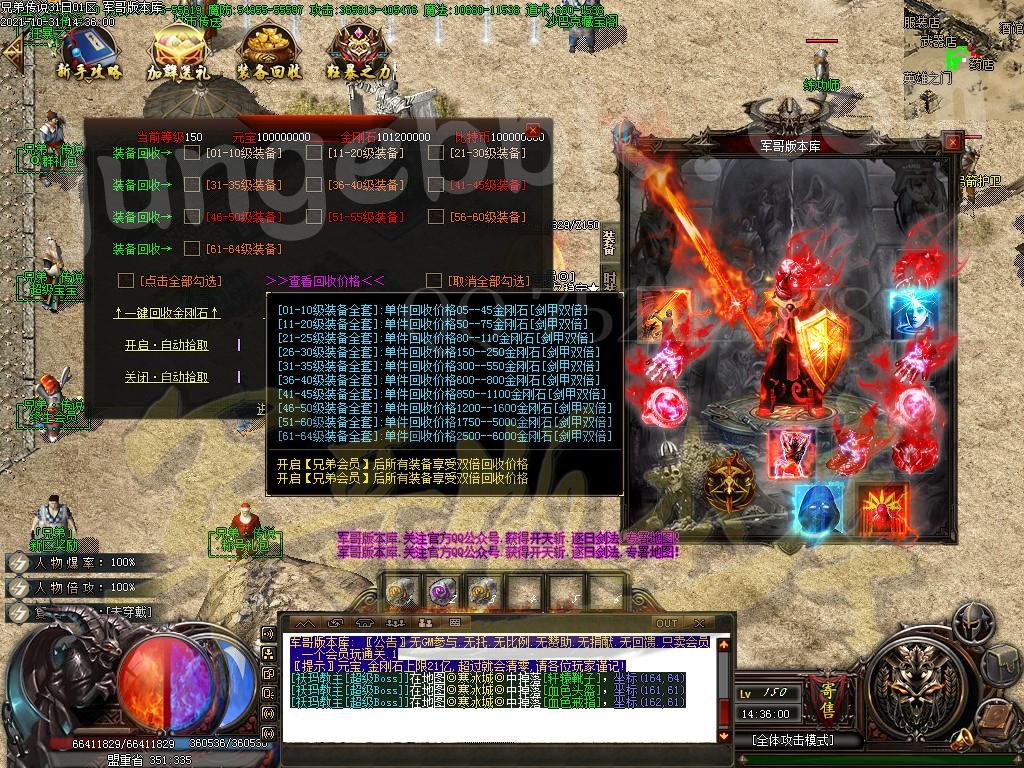 《注意》3《怪物爆率》本服为散人服所有666级以上怪物爆一切装备(包括特殊物品)。