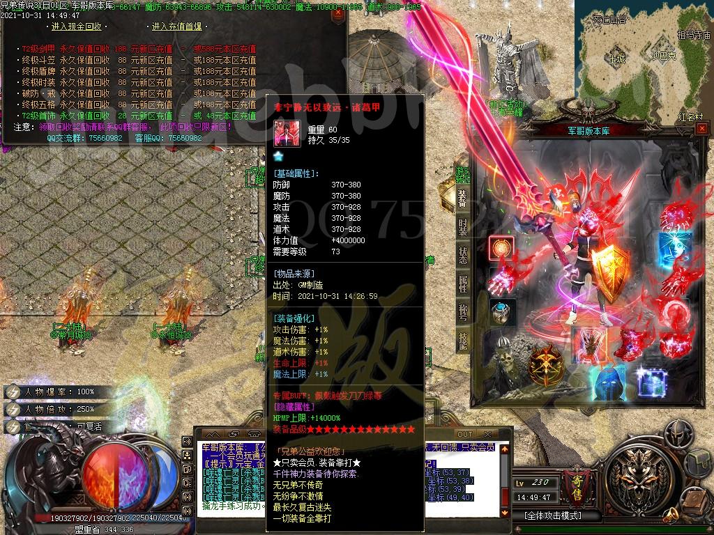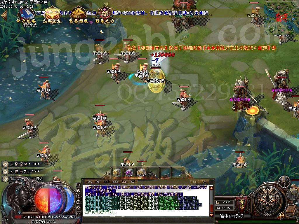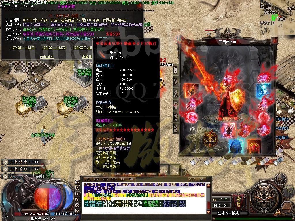 必爆50-100卷.需开通兄弟会员后进入,另外本F凡是666以上都怪物都可以爆出游戏所有装备,神力剑甲,终极特殊!不涉门槛,不卡地图!