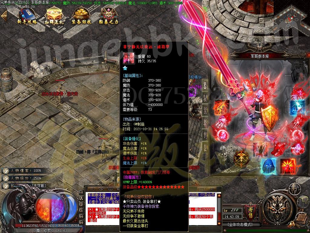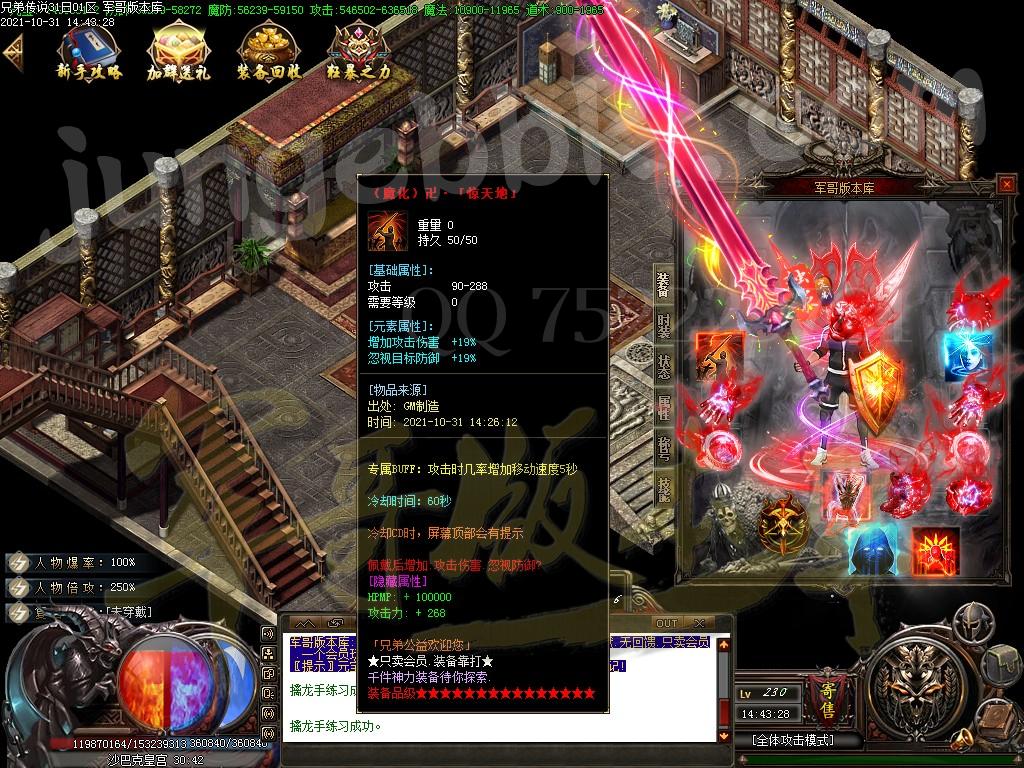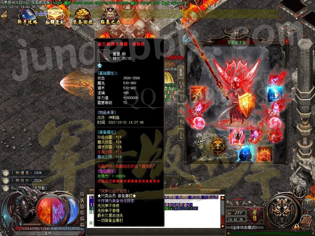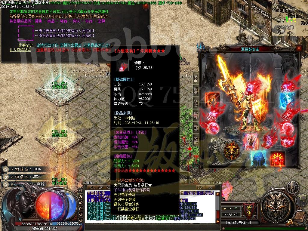 3.每样装备都自带攻倍属性,玩家充值了不打装备的,PK打不过的请找自身原因,谢谢!