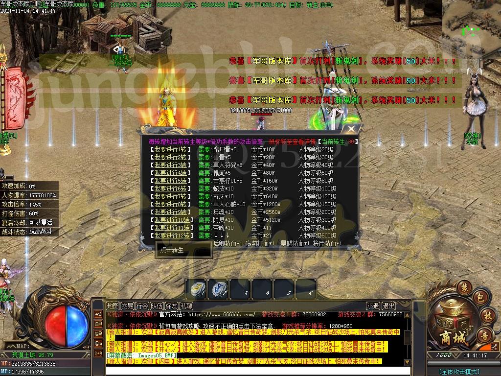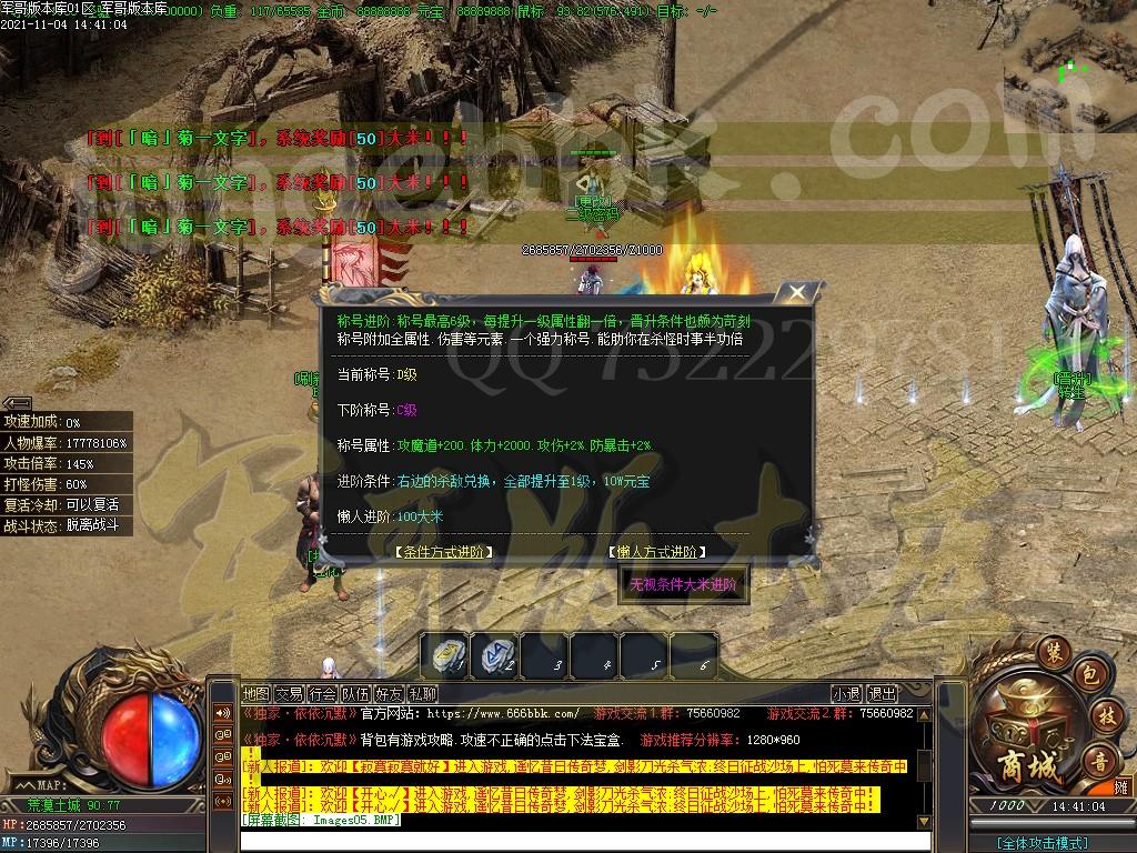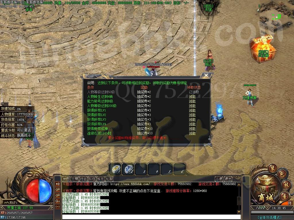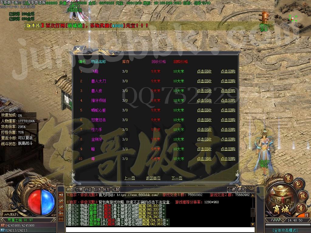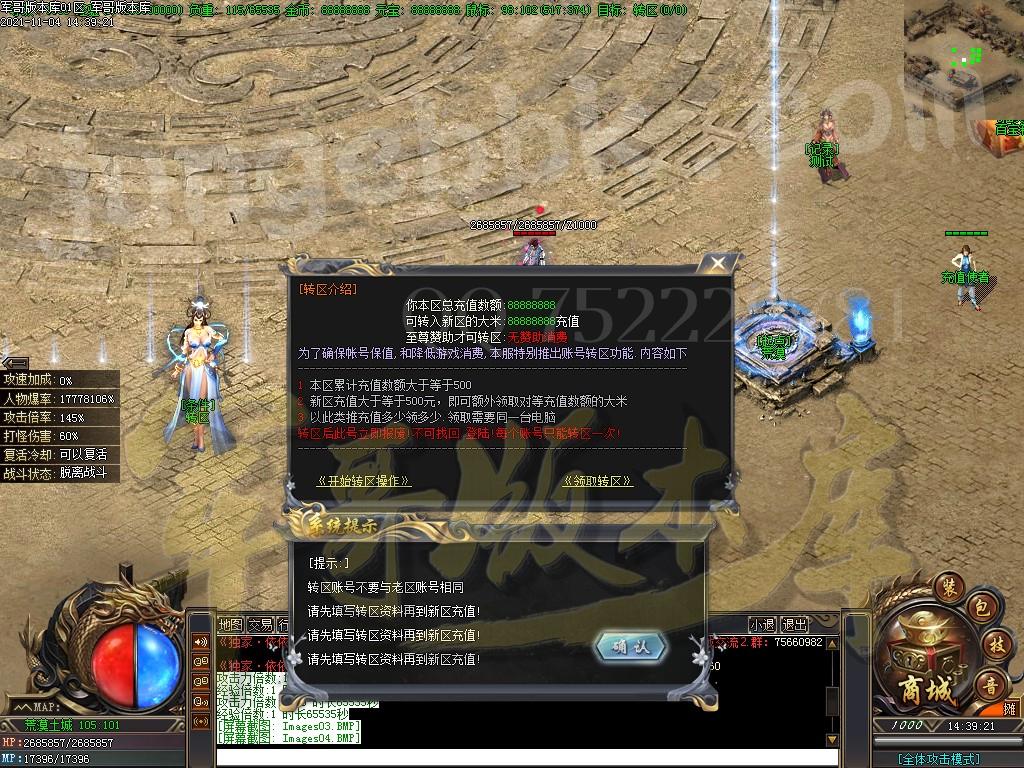 金币充值比例 1 :10   版本为正常开区端有问题联系QQ 616102345  处理