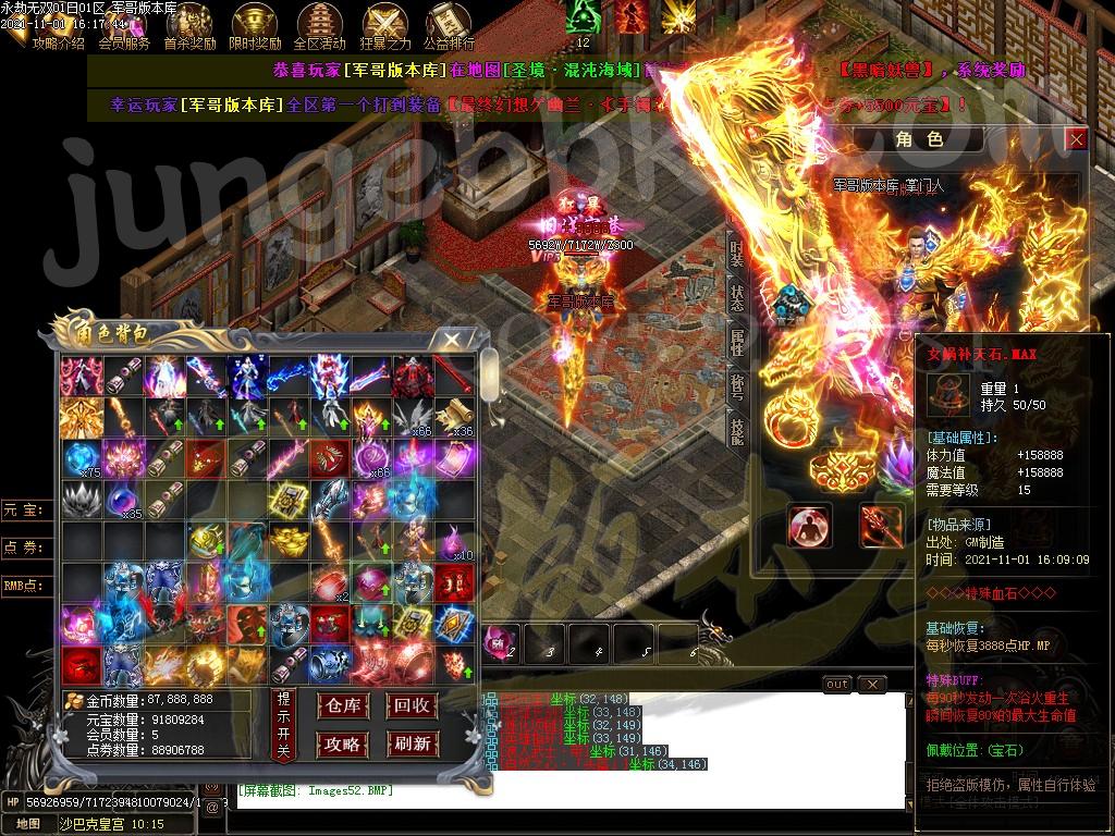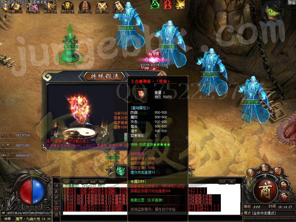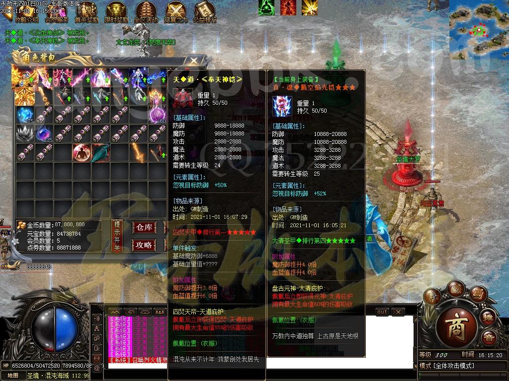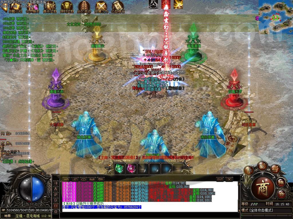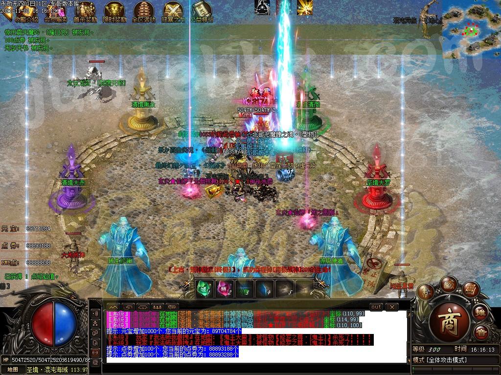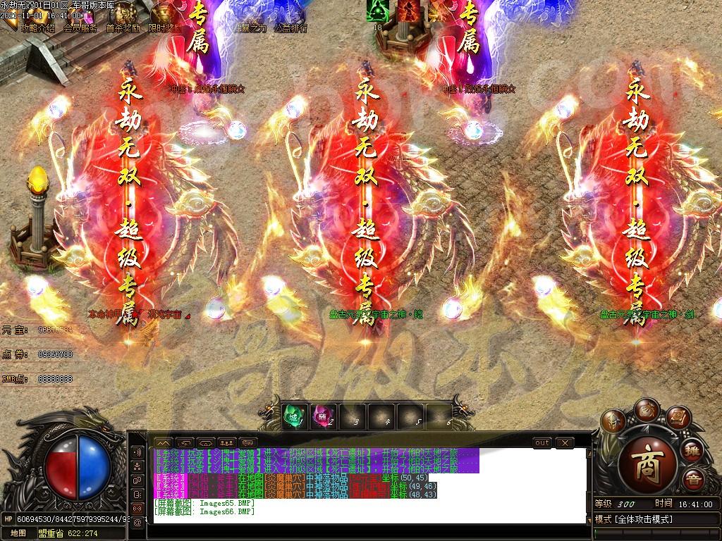 然后就是 进能进的地图打首暴和首杀获得点卷和元宝,前期基本靠宝宝,所有打到的元宝就先合宝宝在装备栏神力!