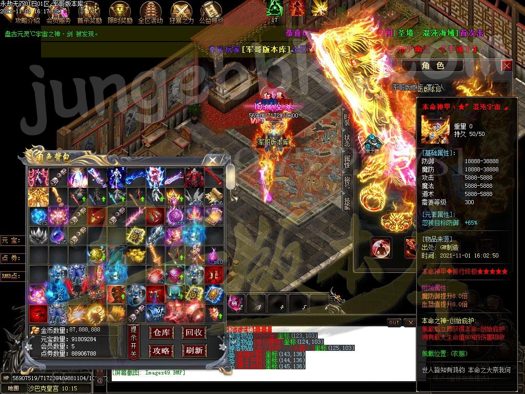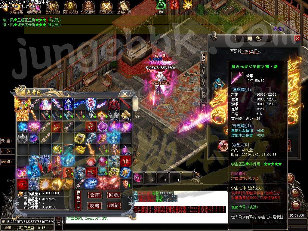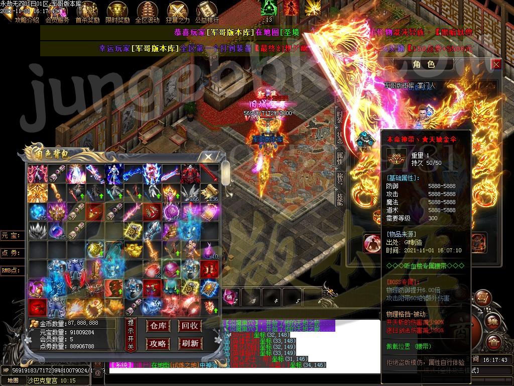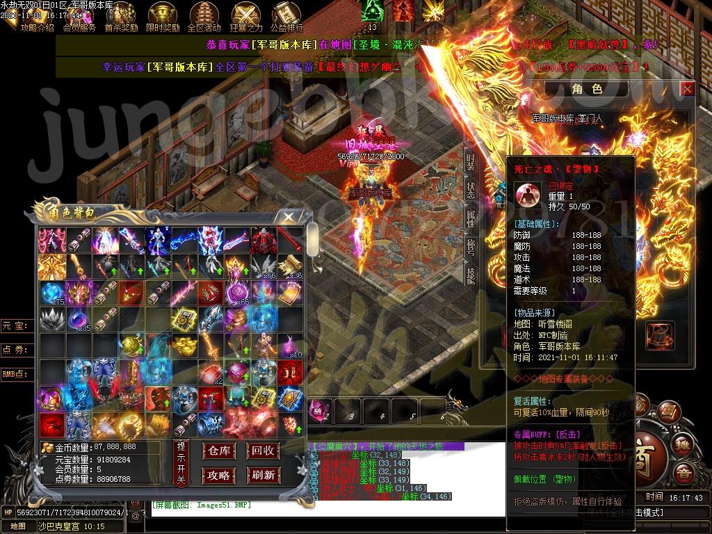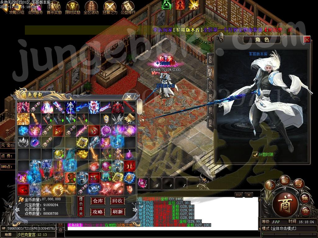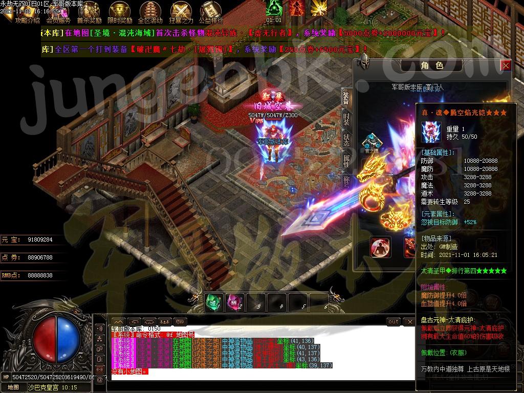 然后就是 进能进的地图打首暴和首杀获得点卷和元宝,前期基本靠宝宝,所有打到的元宝就先合宝宝在装备栏神力!