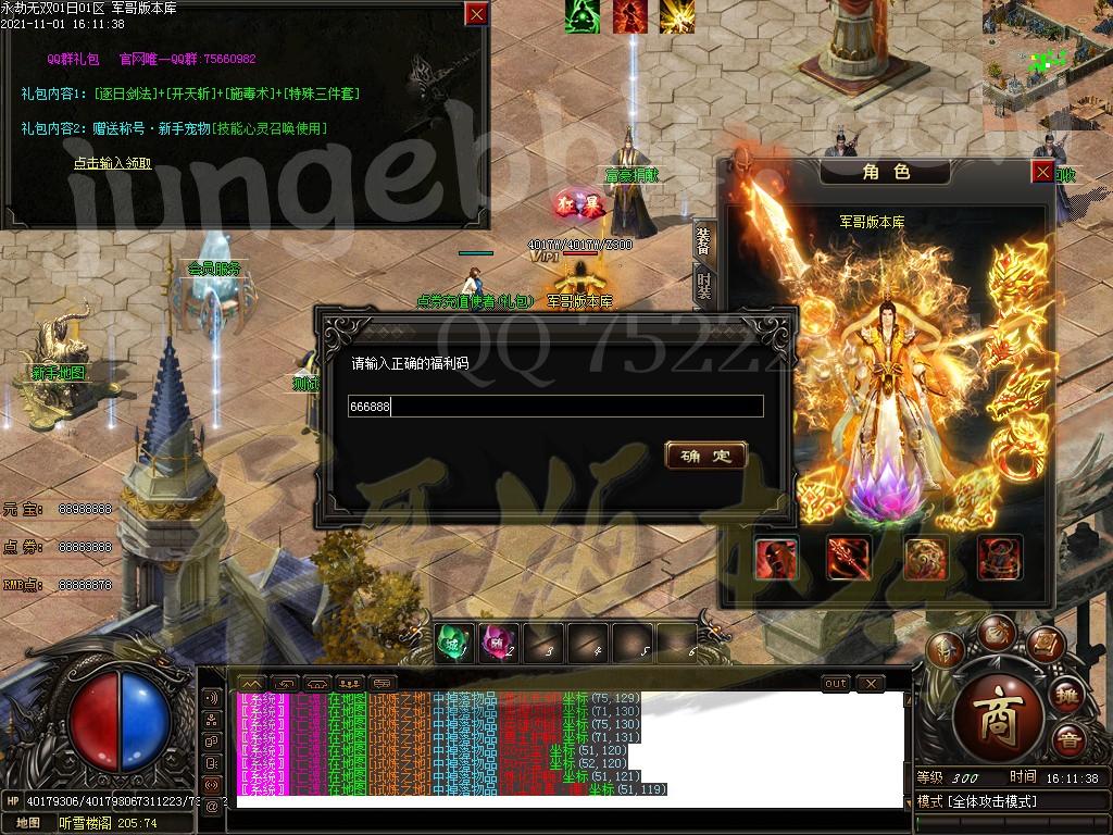 首先玩家上线 第一件事情就是到(土城 202 72)处领取QQ群礼包,赠送新技能及施毒术 称号宝宝 !礼包码为:666888